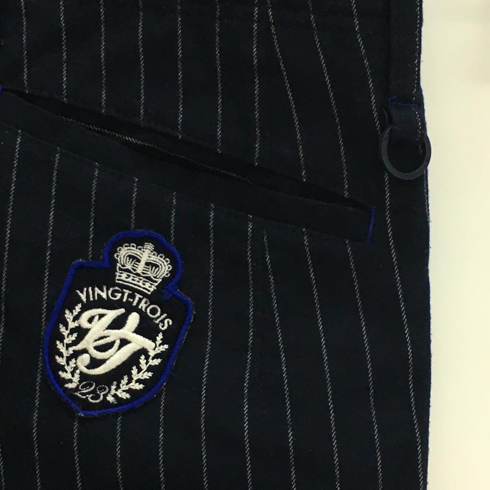 23区ゴルフ パンツ ネイビー×白 ストライプ 表微起毛 ストレッチ メンズ 78 ゴルフウェア 23区