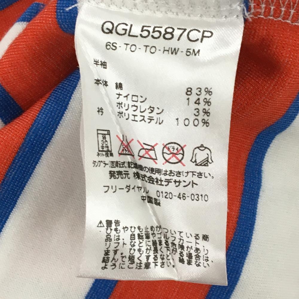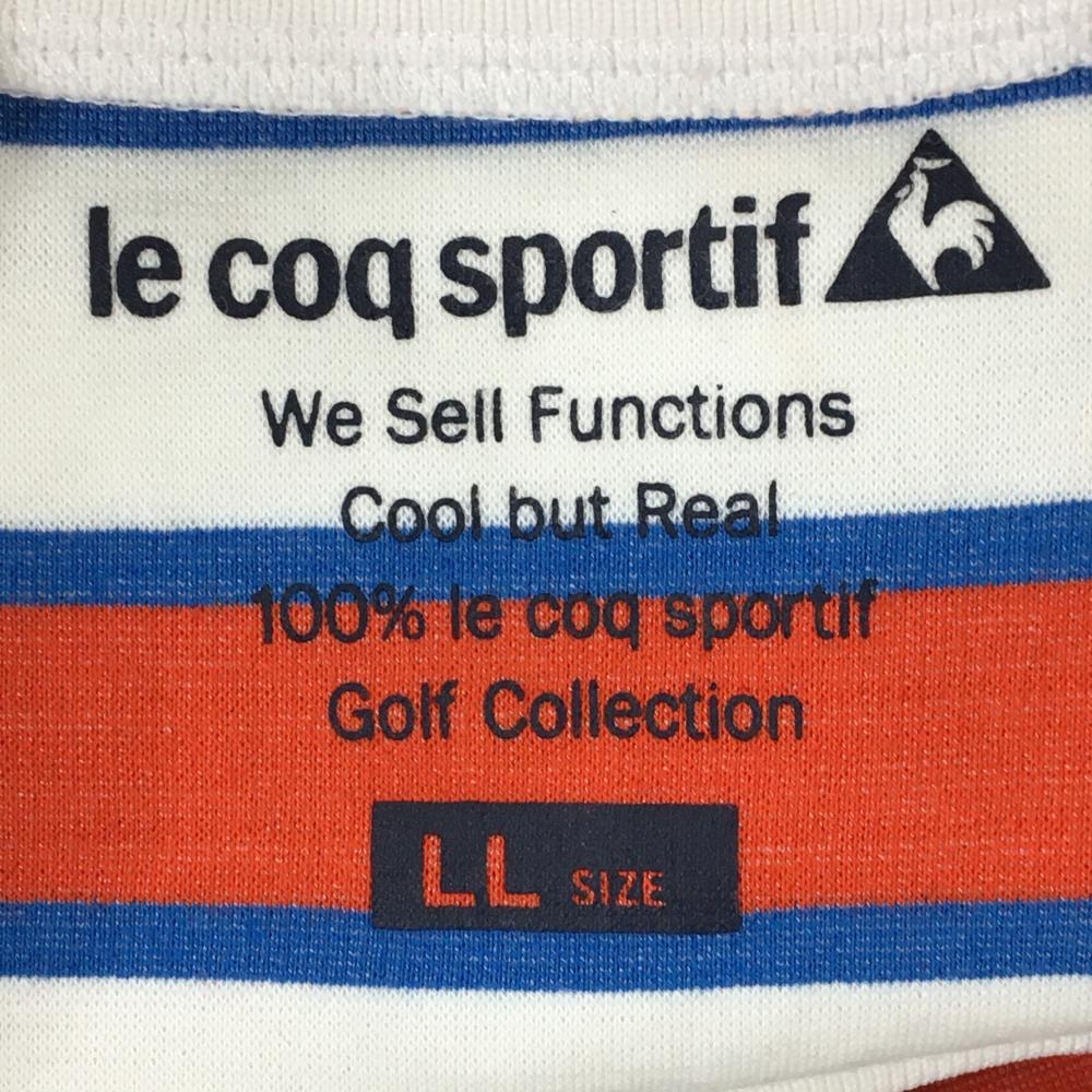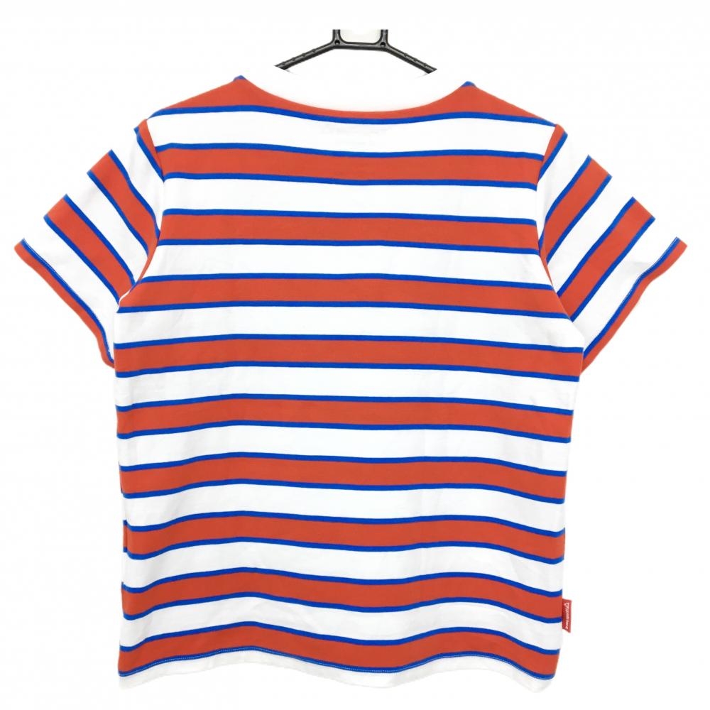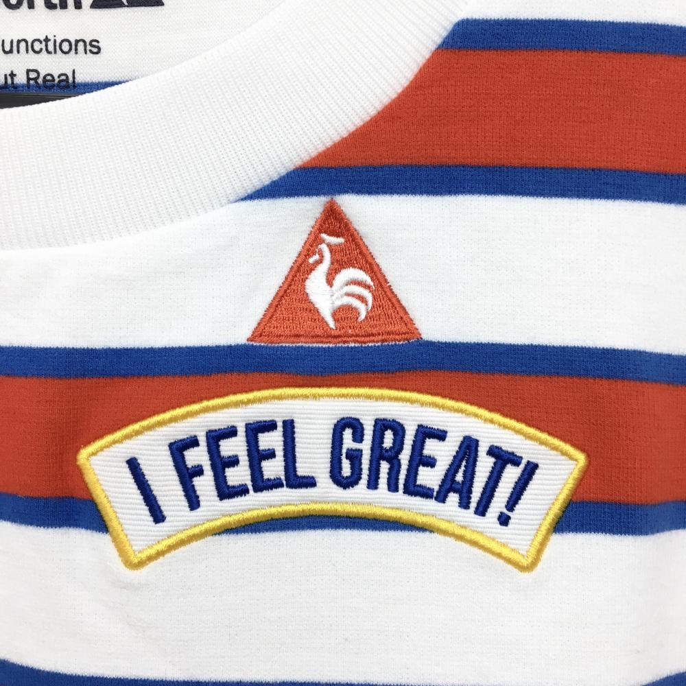 【美品】ルコックゴルフ 半袖Tシャツ 白×レッド×ブルー ボーダー 厚手 レディース LL ゴルフウェア le coq sportif