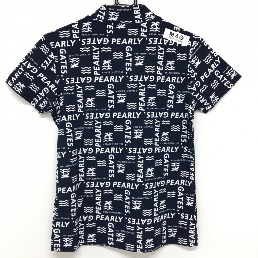 【超美品】パーリーゲイツ 半袖ハイネックシャツ ネイビー×白 フロントロゴ レディース 1(M) ゴルフウェア 2023年モデル PEARLY GATES