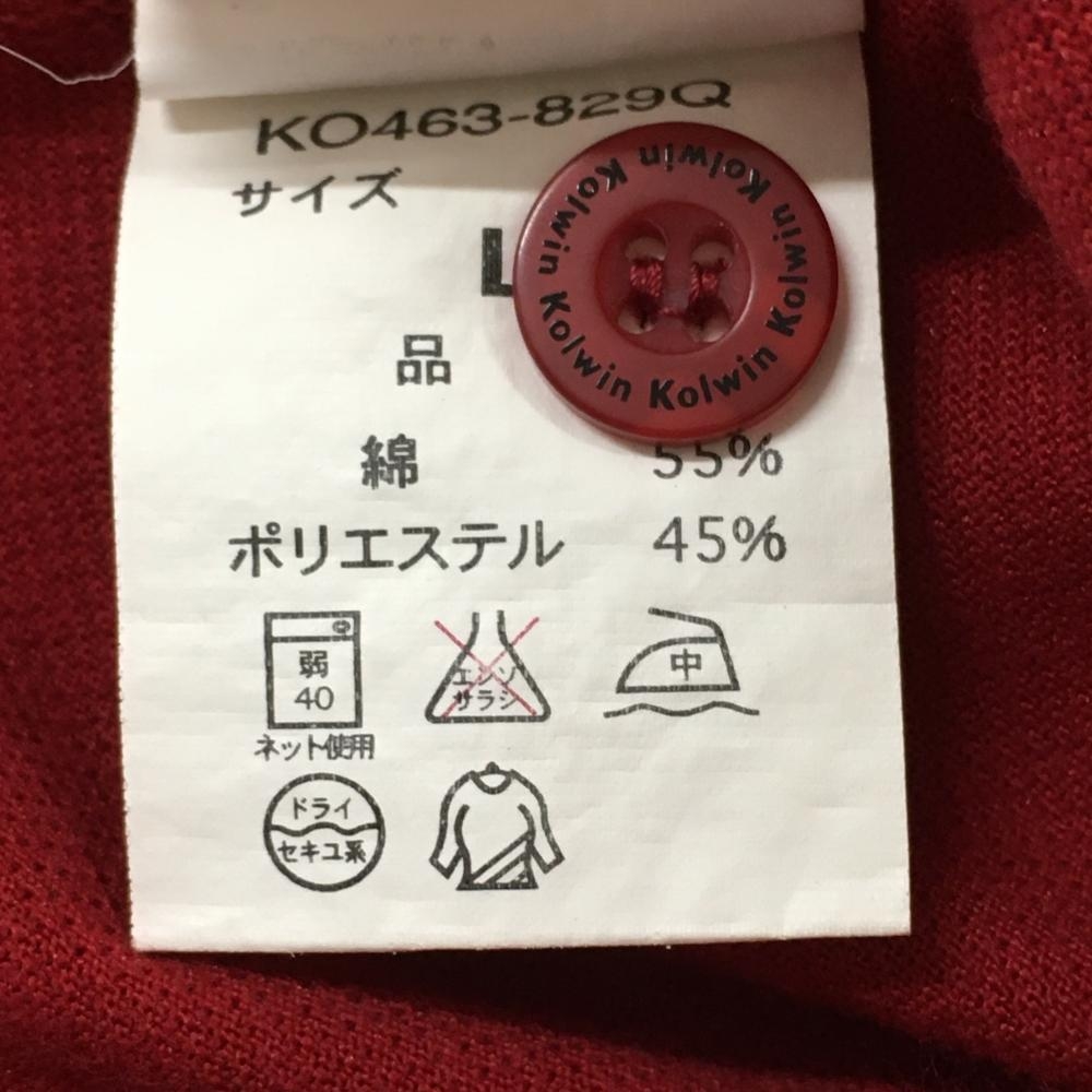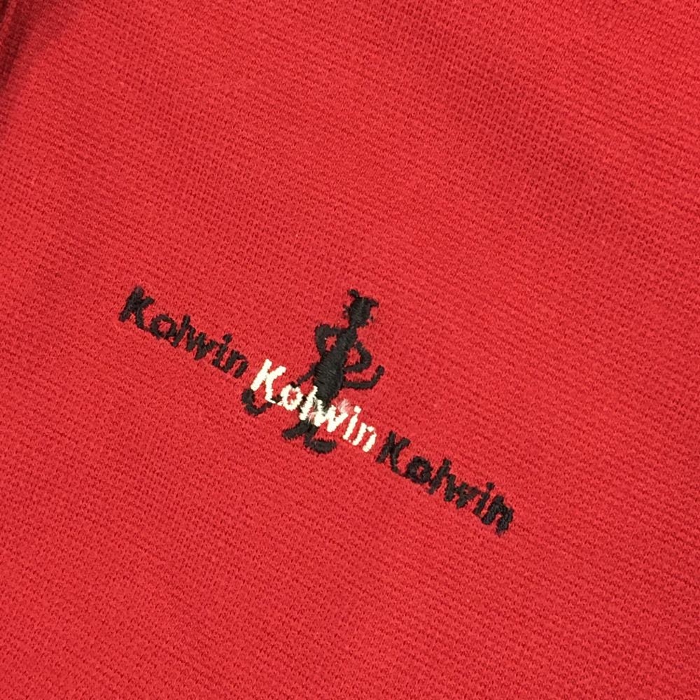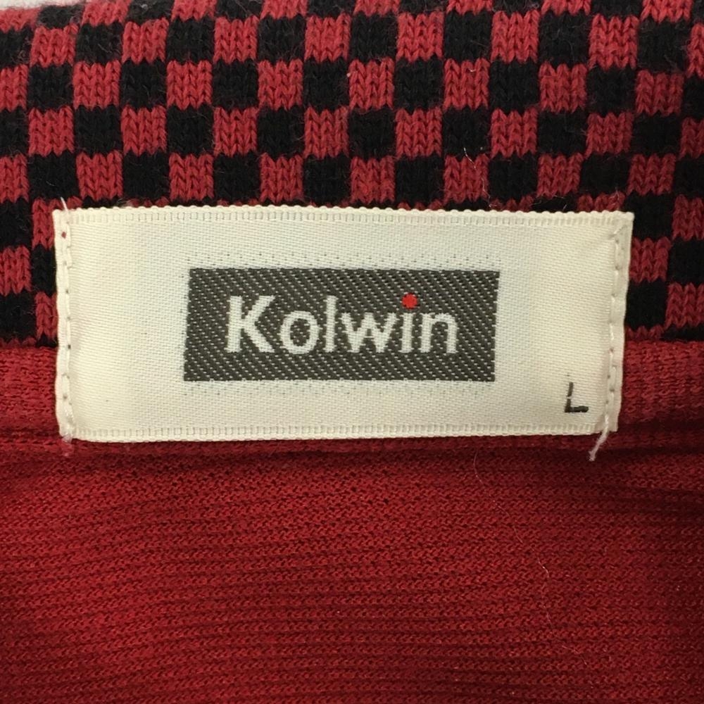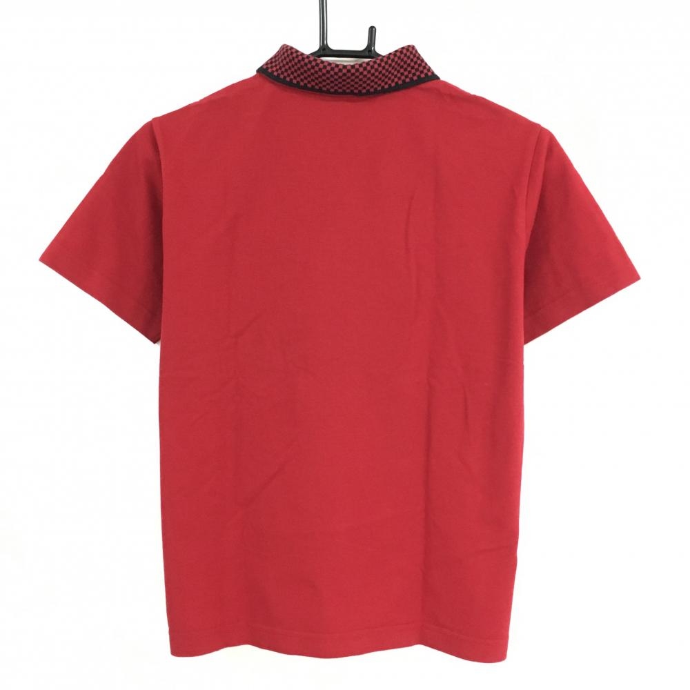 【超美品】コルウィン 半袖ポロシャツ レッド×黒 襟ブロック柄 胸元刺しゅう レディース L ゴルフウェア Kolwin