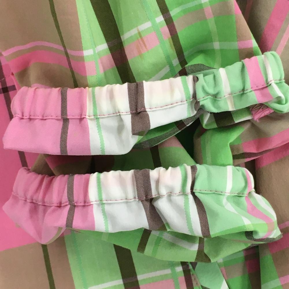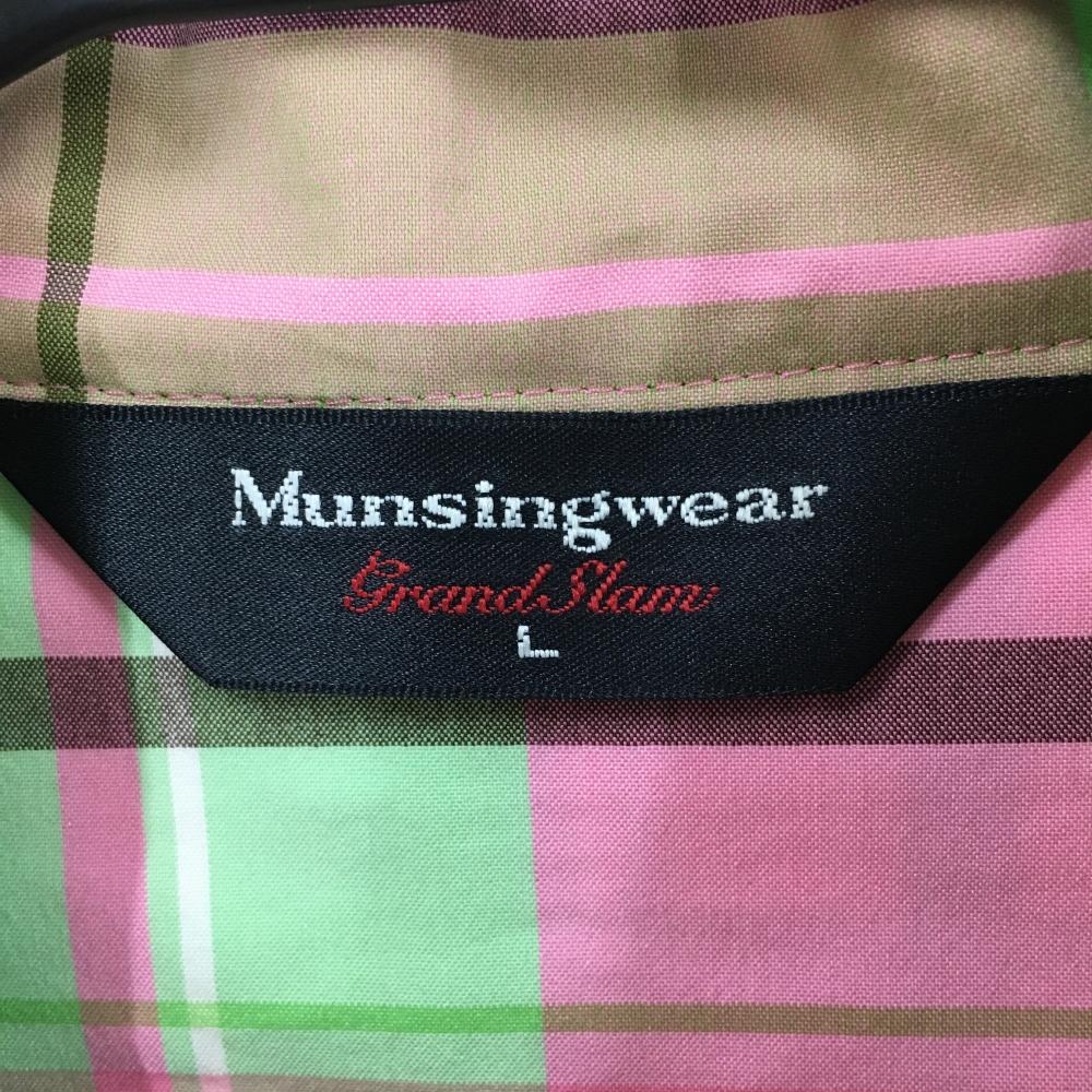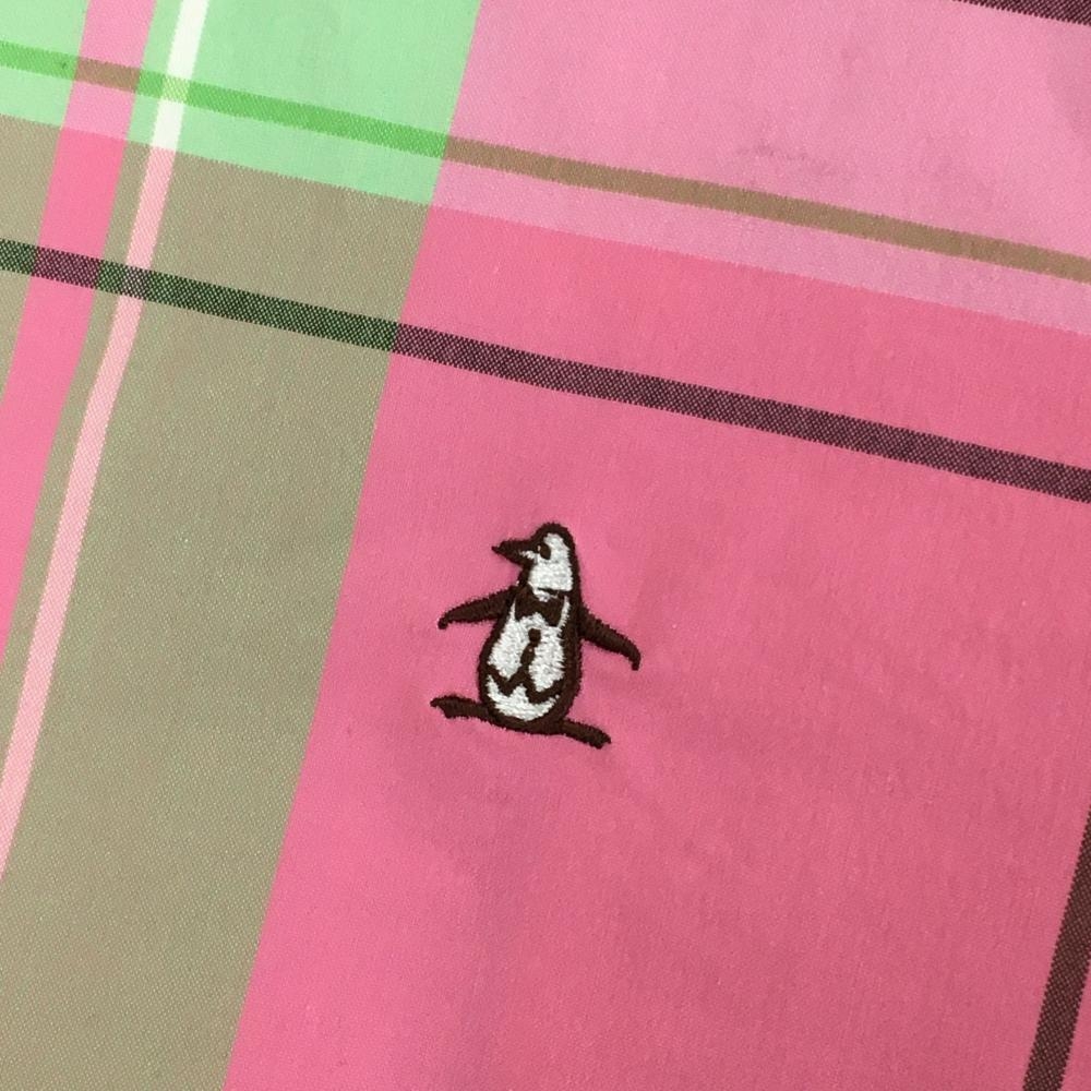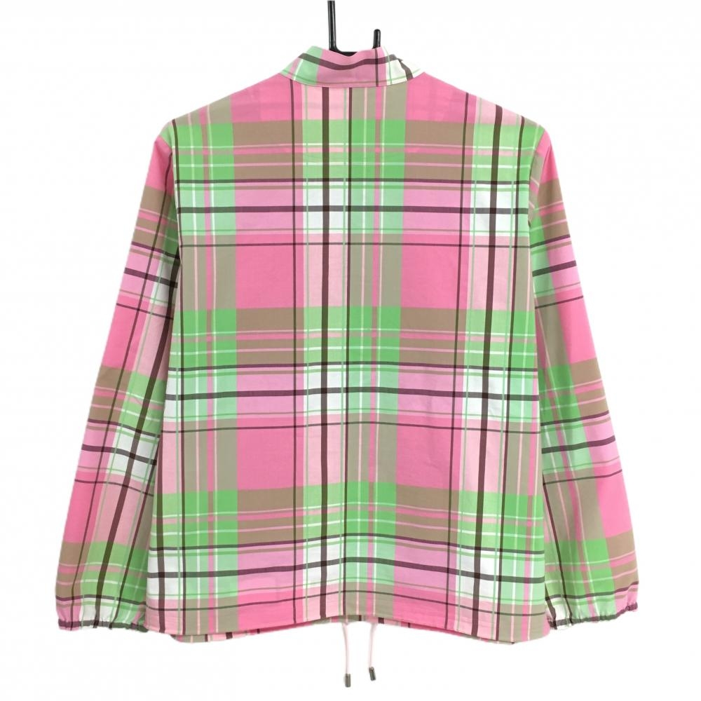 マンシングウェア ブルゾン ピンク×ライトグリーン チェック ハーフジップ ロゴ刺しゅう レディース L ゴルフウェア Munsingwear