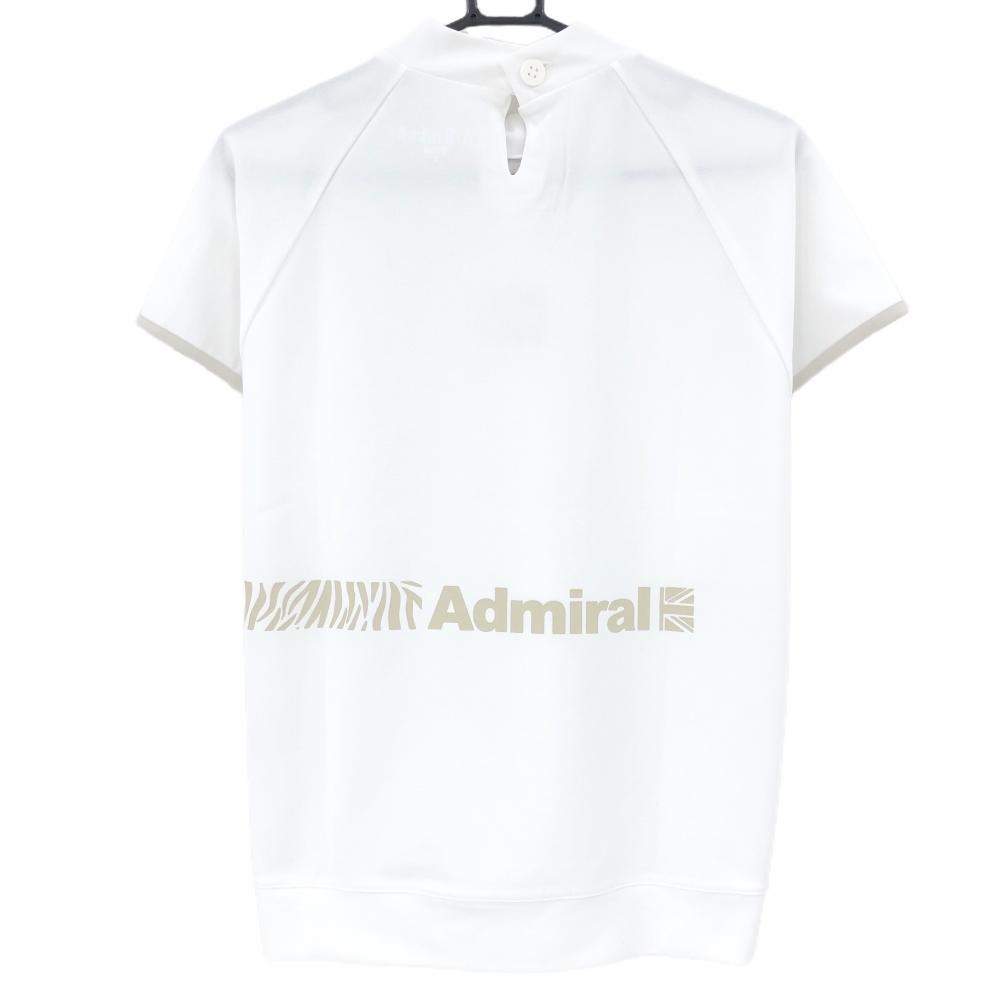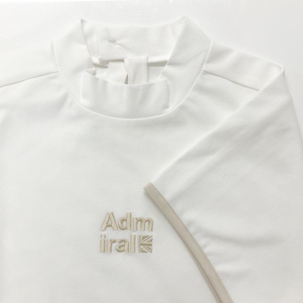 【美品】アドミラル 半袖ハイネックシャツ 白×ベージュ系 フロントロゴ刺しゅう レディース L ゴルフウェア 2024年モデル Admiral