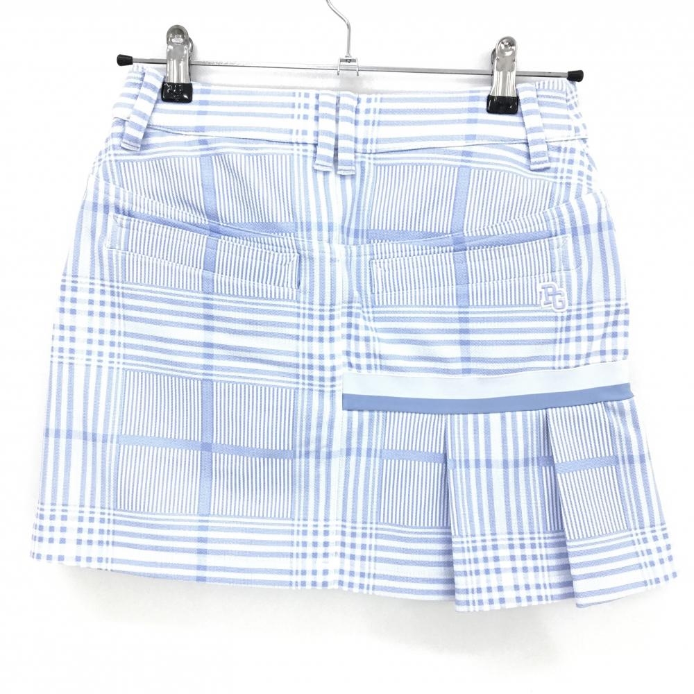 【超美品】パーリーゲイツ スカート ライトブルー×白 チェック 一部プリーツ レディース 0(S) ゴルフウェア 2025年モデル PEARLY GATES