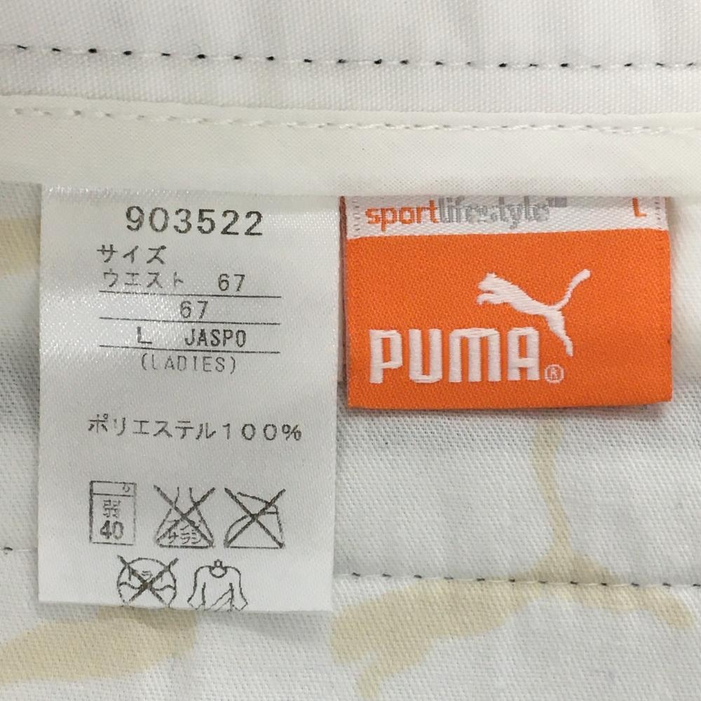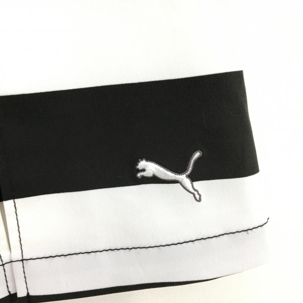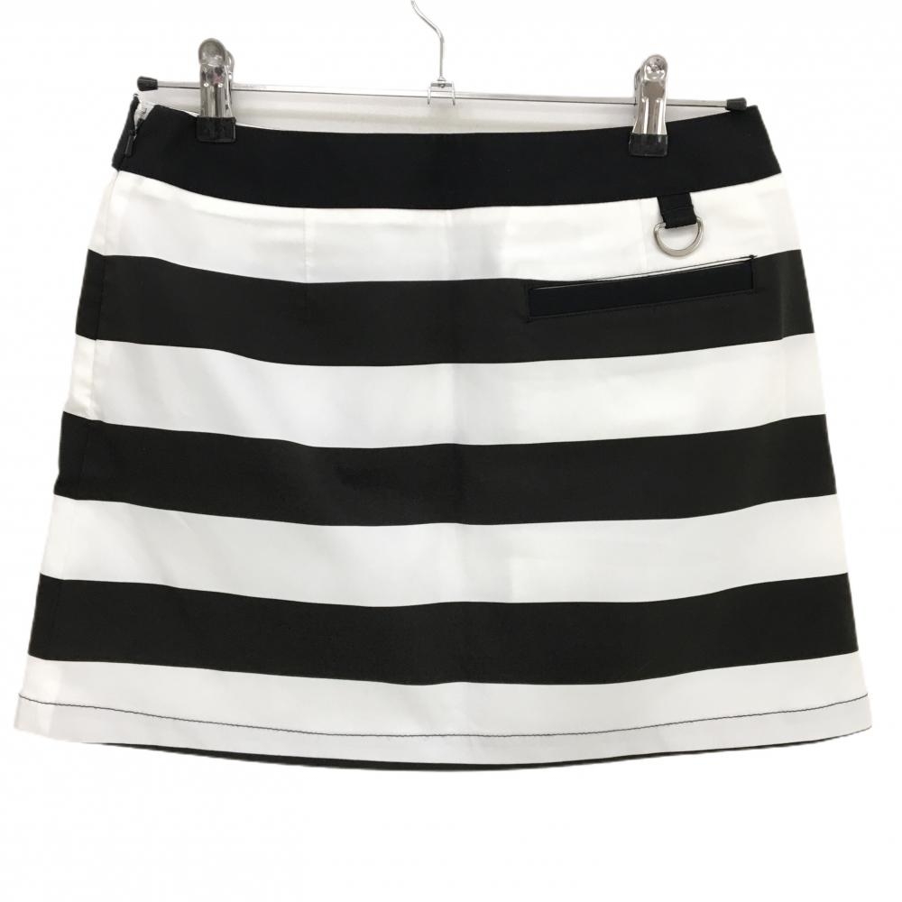 【美品】プーマ スカート 白×黒 ボーダー柄 裾ロゴ レディース L ゴルフウェア PUMA