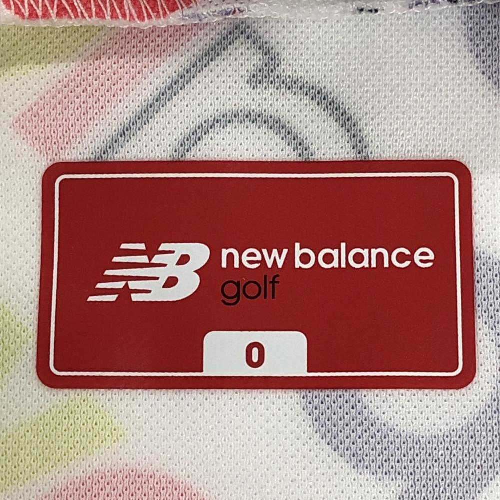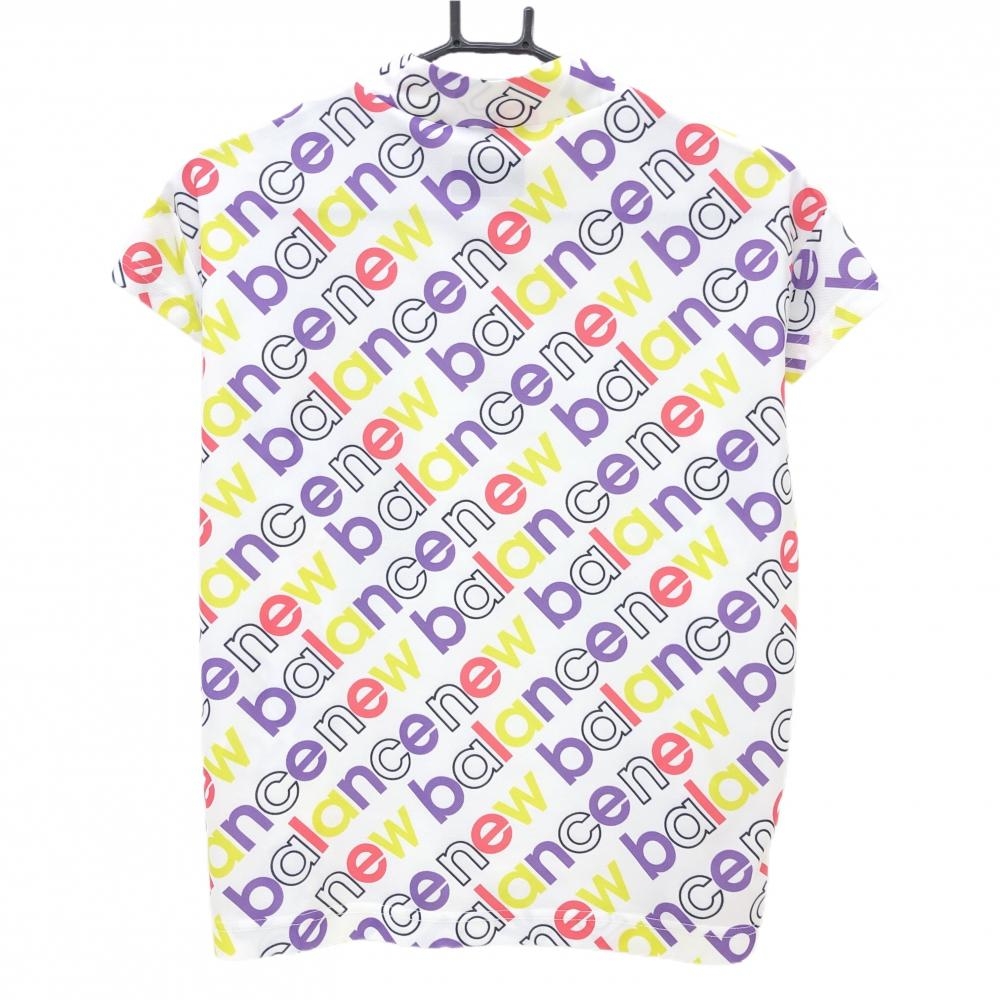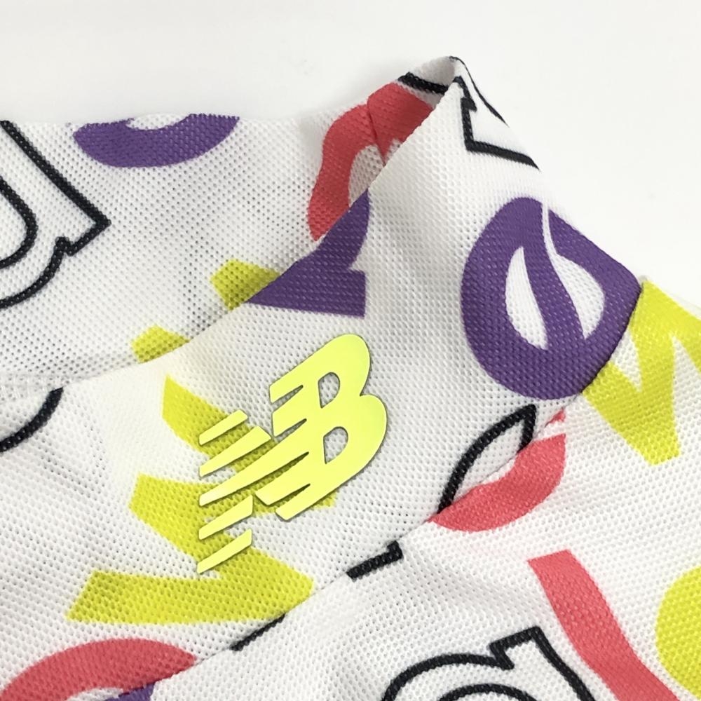 ニューバランスゴルフ 半袖ハイネックシャツ 白×マルチカラー ロゴ総柄 レディース 0(S) ゴルフウェア 2023年モデル New Balance