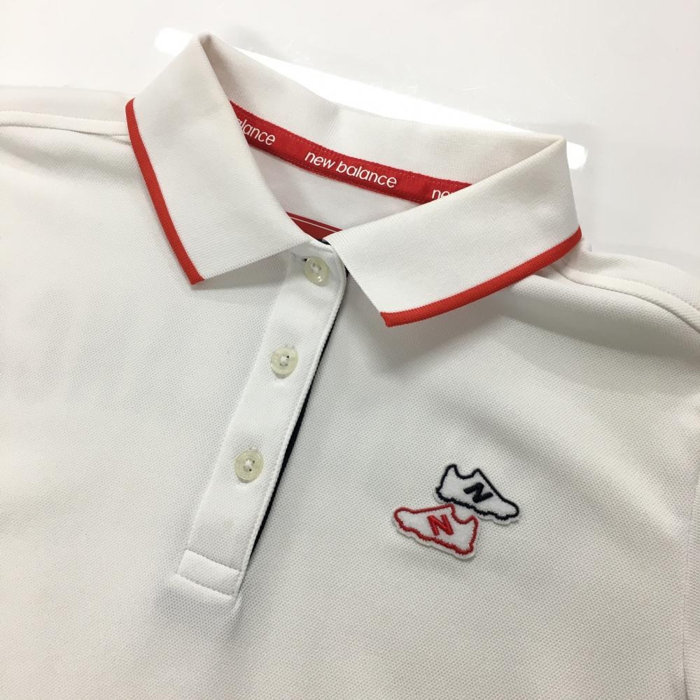 ニューバランスゴルフ 半袖ポロシャツ 白×レッド 背面ロゴ レディース 2(L) ゴルフウェア New Balance