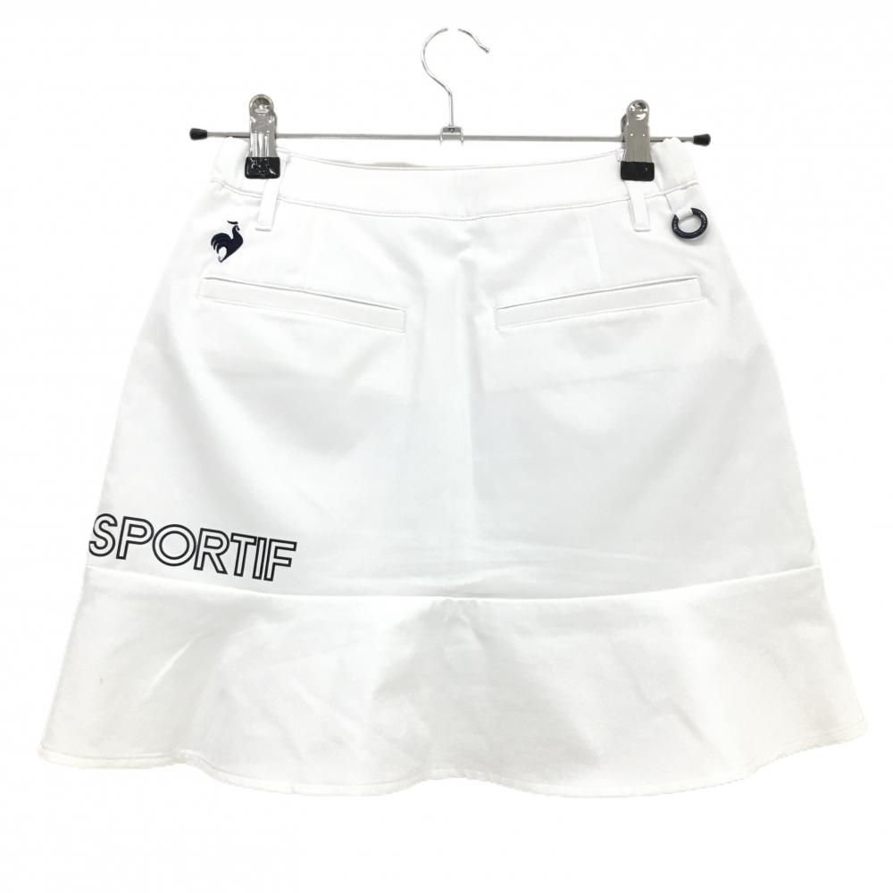 【美品】ルコックゴルフ スカート 白×黒 内側インナーパンツ ロゴプリント レディース 9 ゴルフウェア le coq sportif