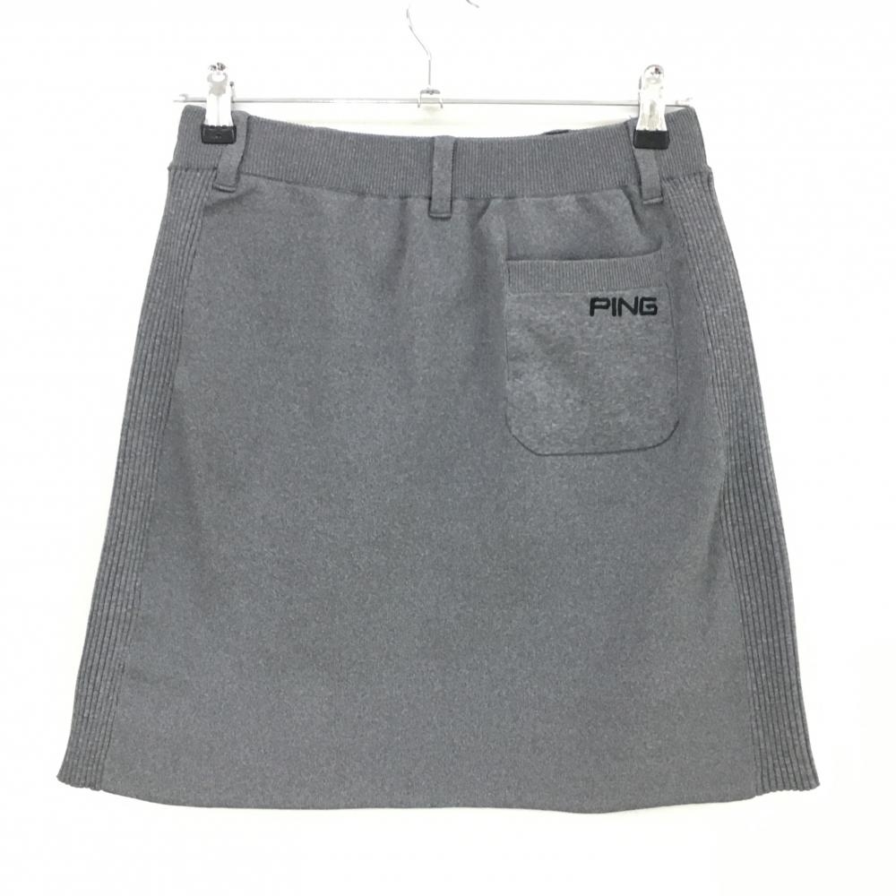 【超美品】ピン ニットスカート グレー サイドリブ ロゴ刺しゅう レディース M ゴルフウェア PING
