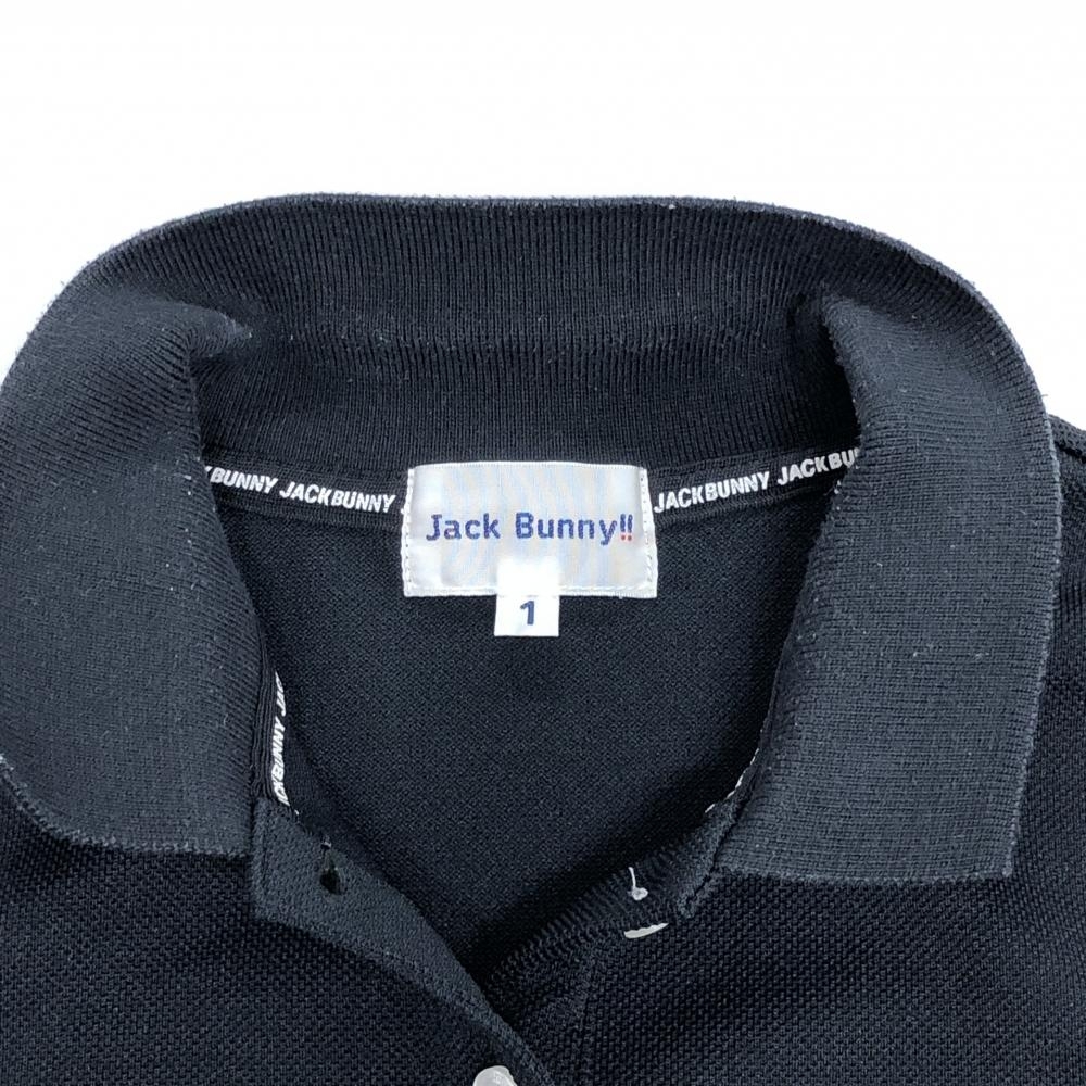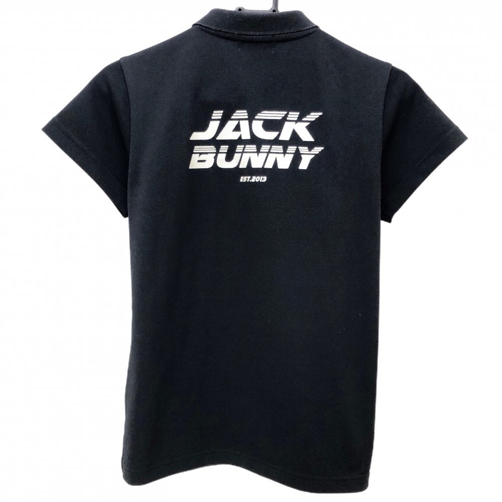 ジャックバニー 半袖ポロシャツ 黒 ロゴプリントシルバー レディース 1(M) ゴルフウェア Jack Bunny