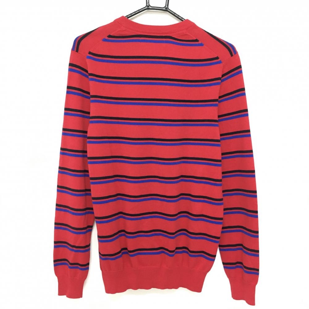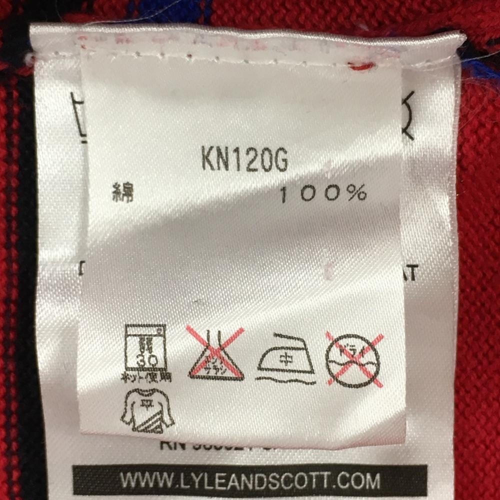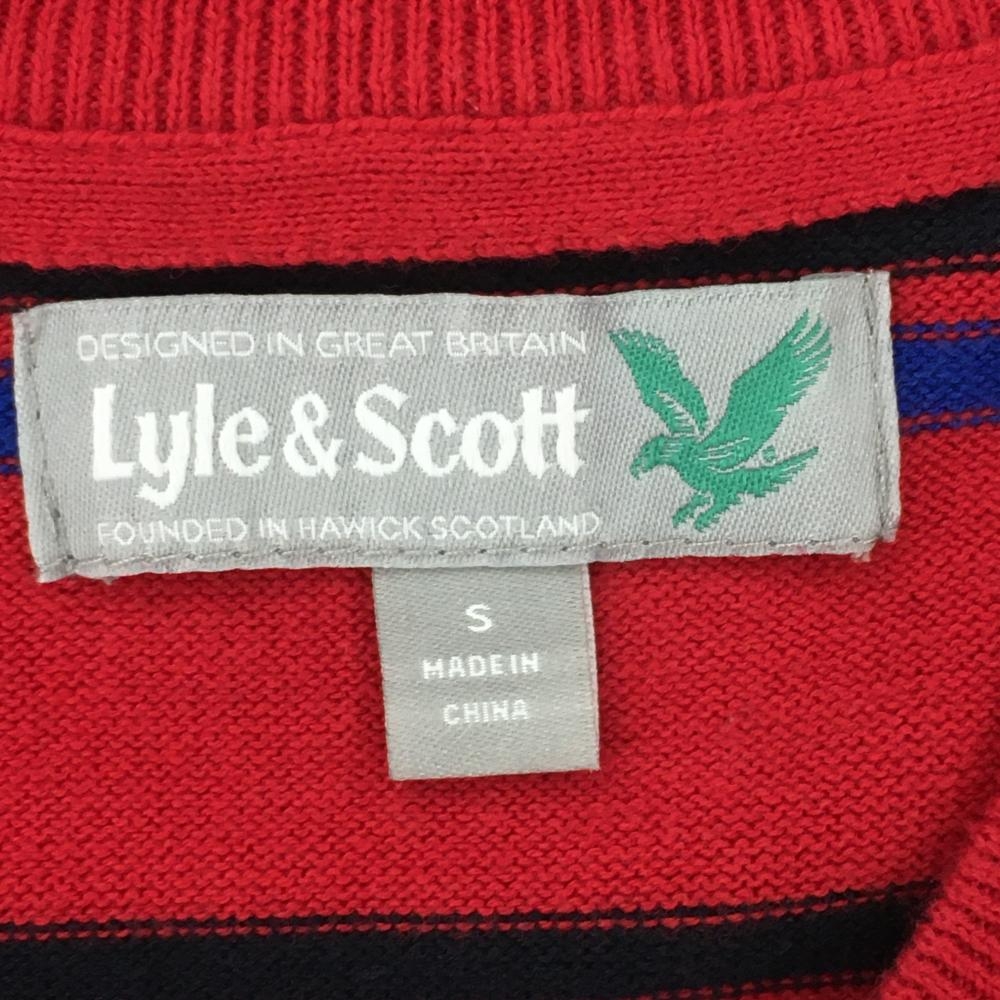 【超美品】ライルアンドスコット セーター レッド×ブルー ボーダー コットン100% Vネック ニット メンズ S ゴルフウェア LYLE&SCOTT