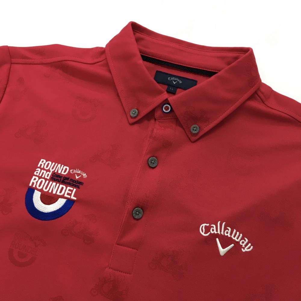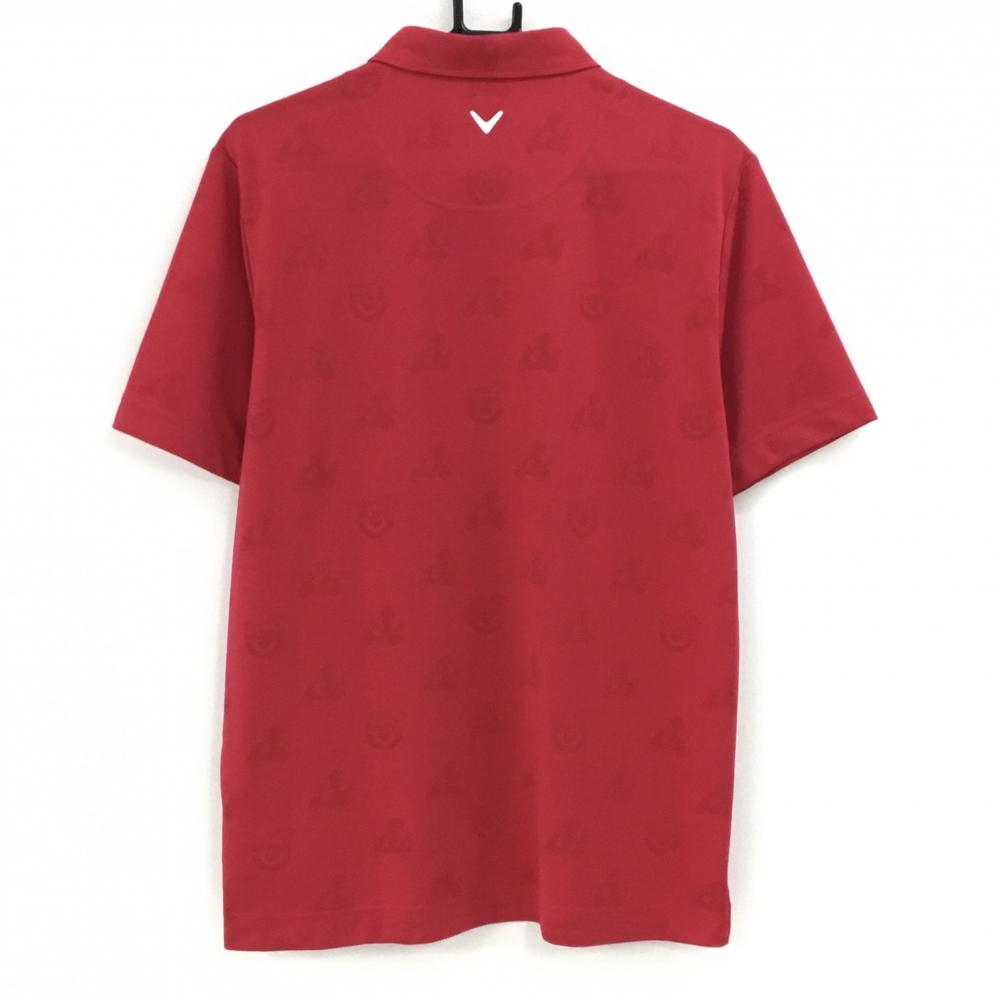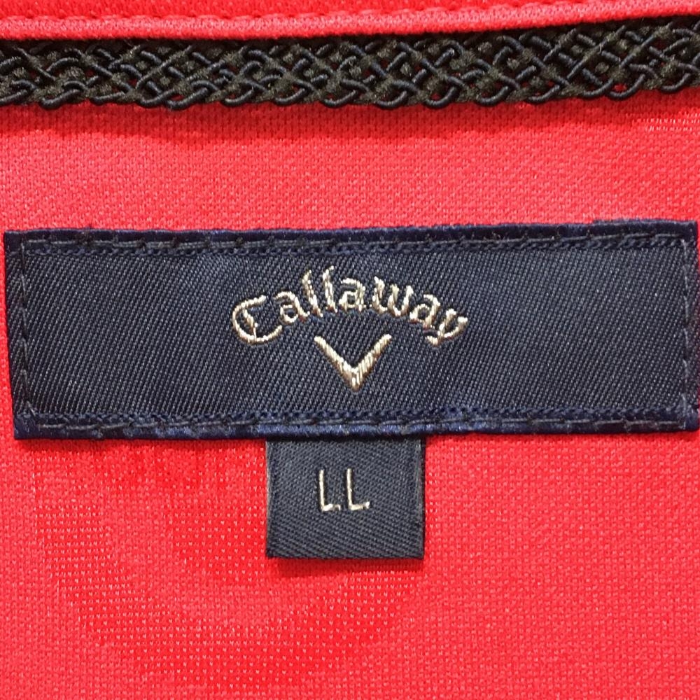 【美品】キャロウェイ 半袖ポロシャツ レッド 地模様 ロゴ白 ボタンダウン メンズ LL ゴルフウェア Callaway