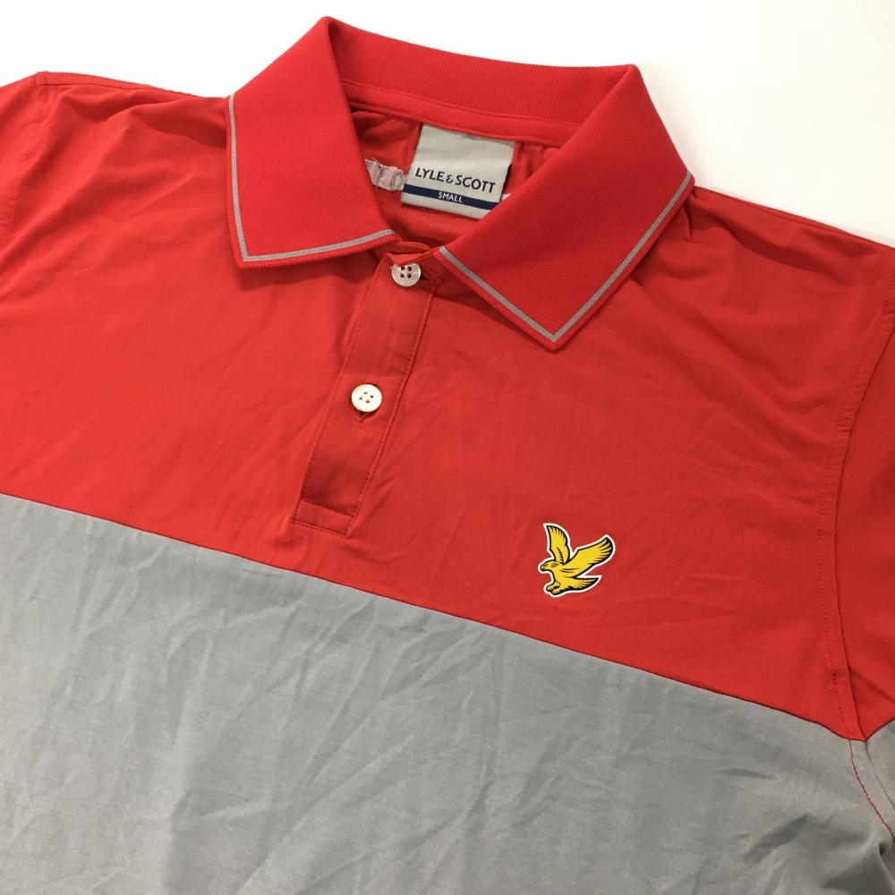 【超美品】ライルアンドスコット 半袖ポロシャツ グレー×レッド バイカラー ストレッチ メンズ SMALL ゴルフウェア LYLE&SCOTT