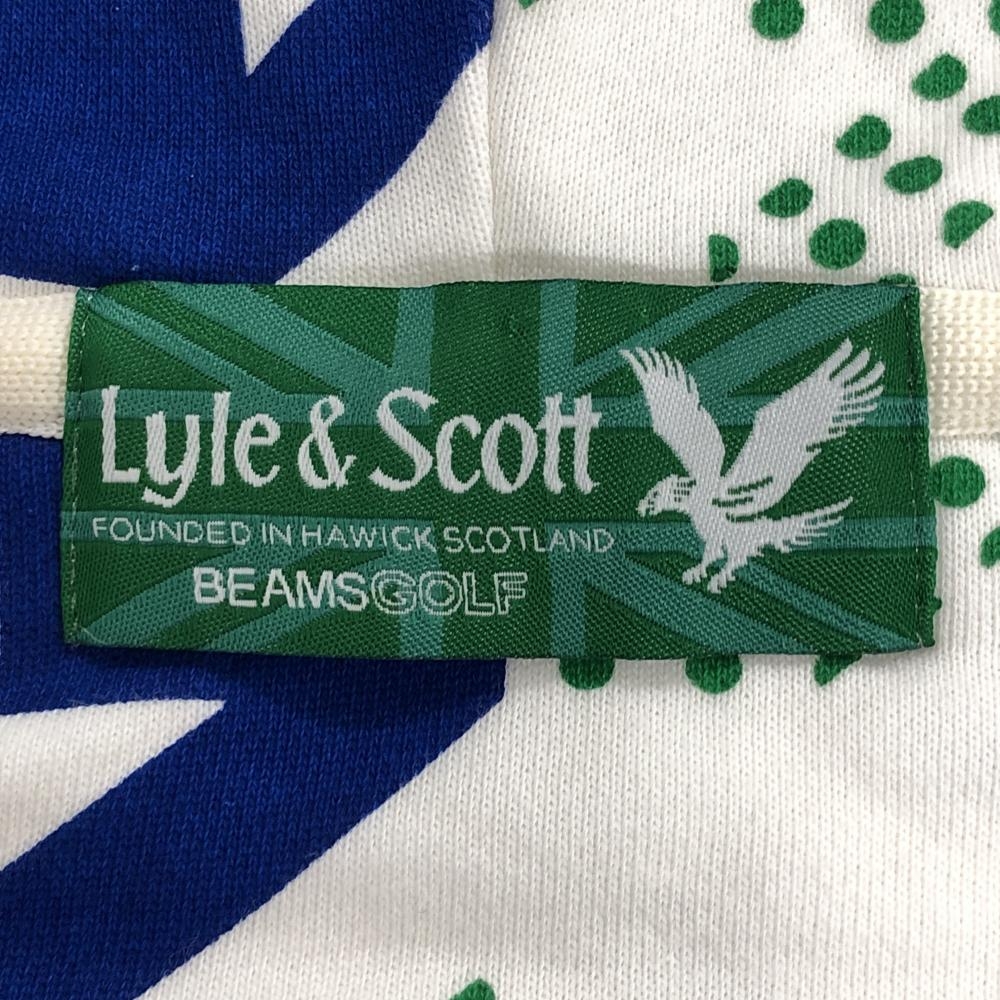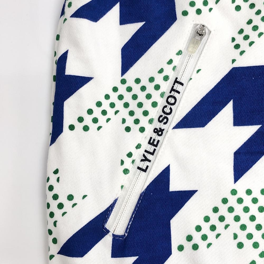 【超美品】ライルアンドスコット ジップパーカー 白×ブルー 千鳥格子 ドット 裏毛素材 メンズ S ゴルフウェア LYLE&SCOTT