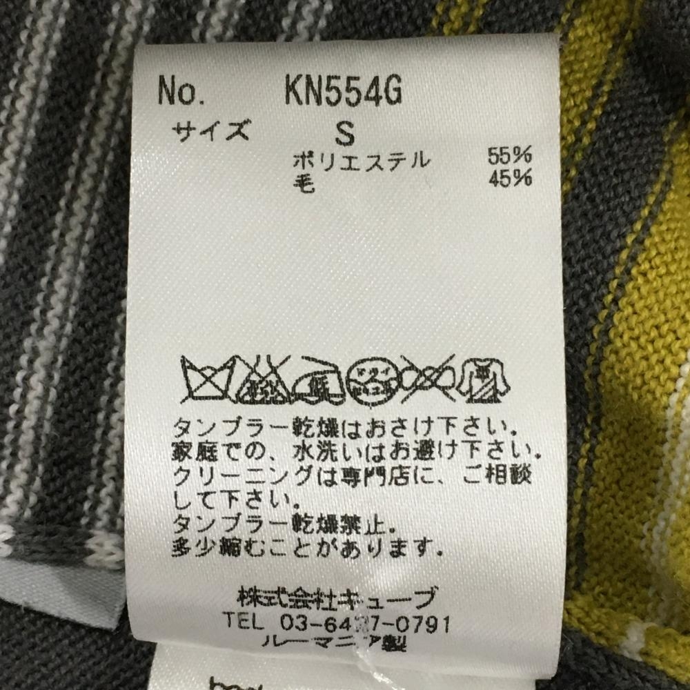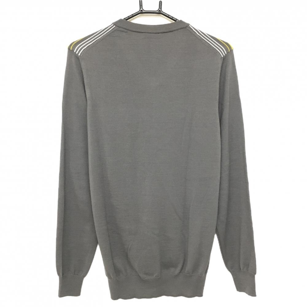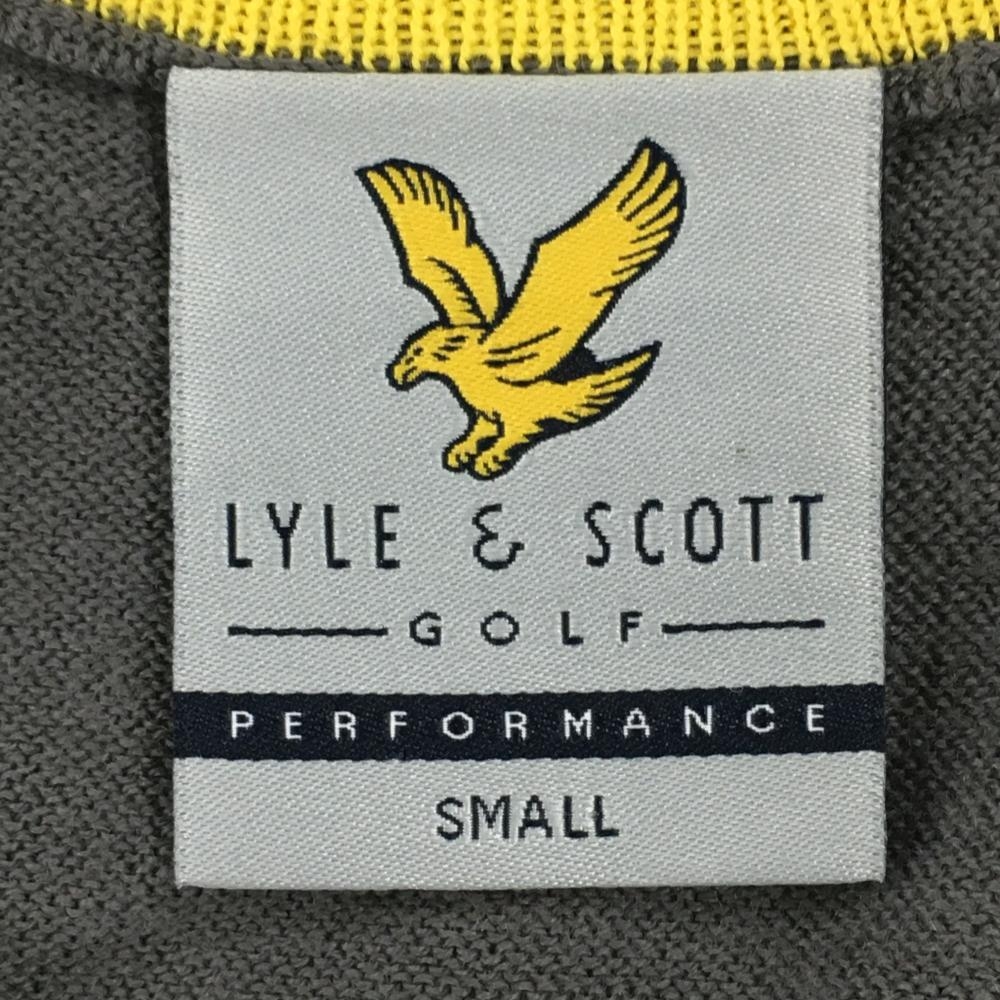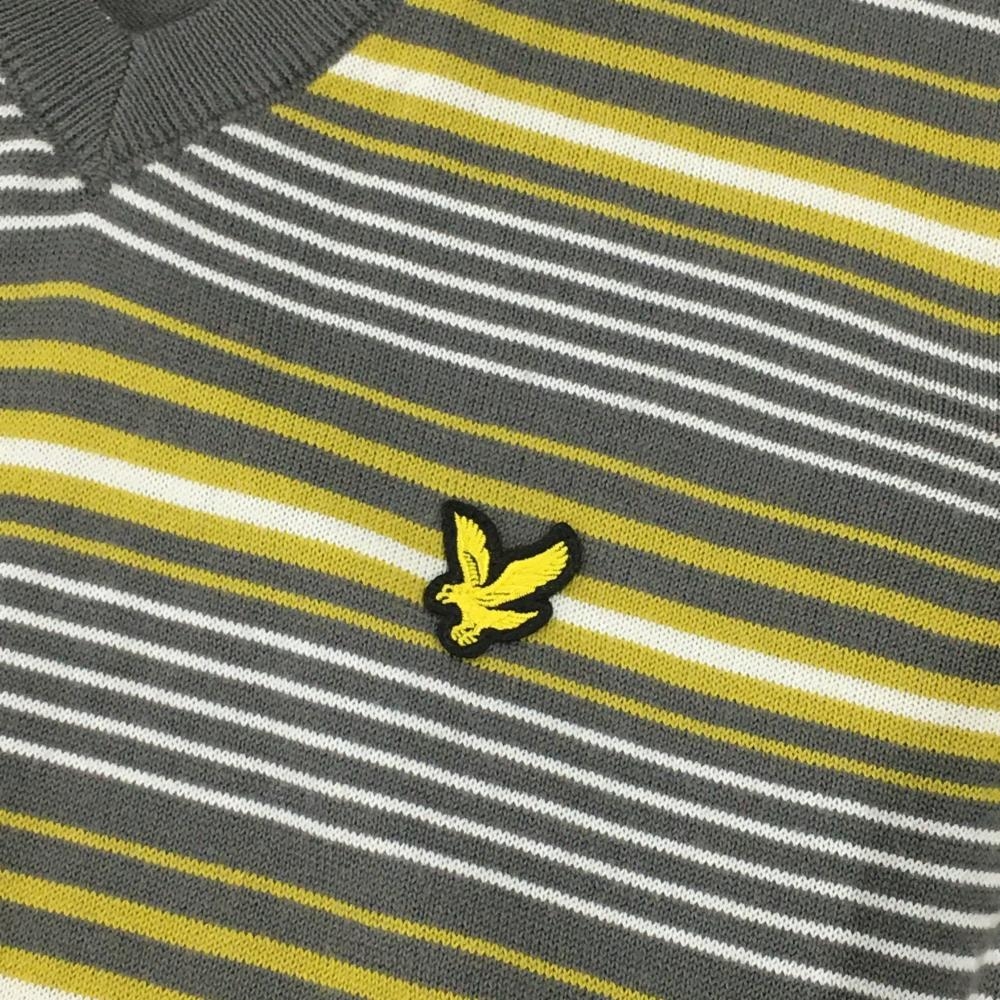 【超美品】ライルアンドスコット セーター グレー×イエロー 前身頃ボーダー ウール混 Vネック メンズ SMALL ゴルフウェア LYLE&SCOTT