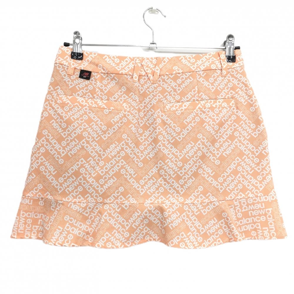 【超美品】ニューバランスゴルフ スカート オレンジ×白 ロゴ総柄 内側インナーパンツ レディース 1(M) ゴルフウェア New Balance