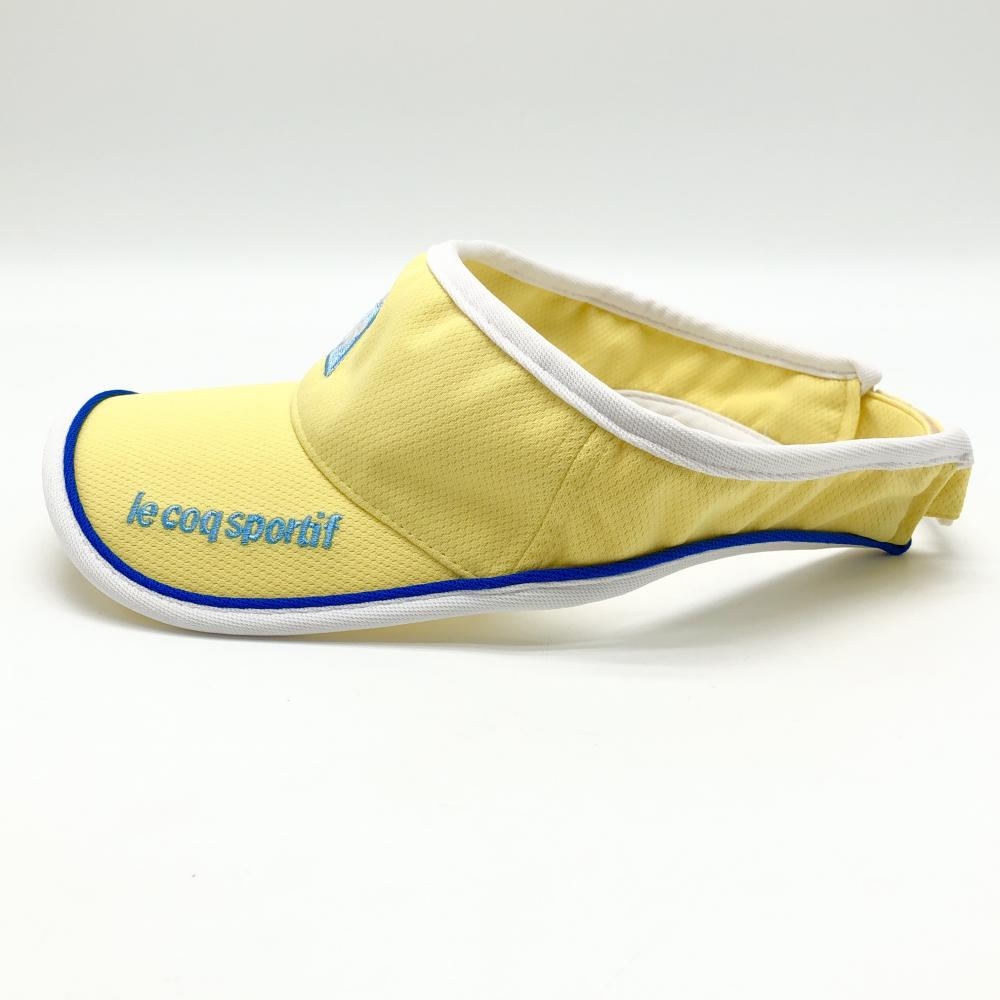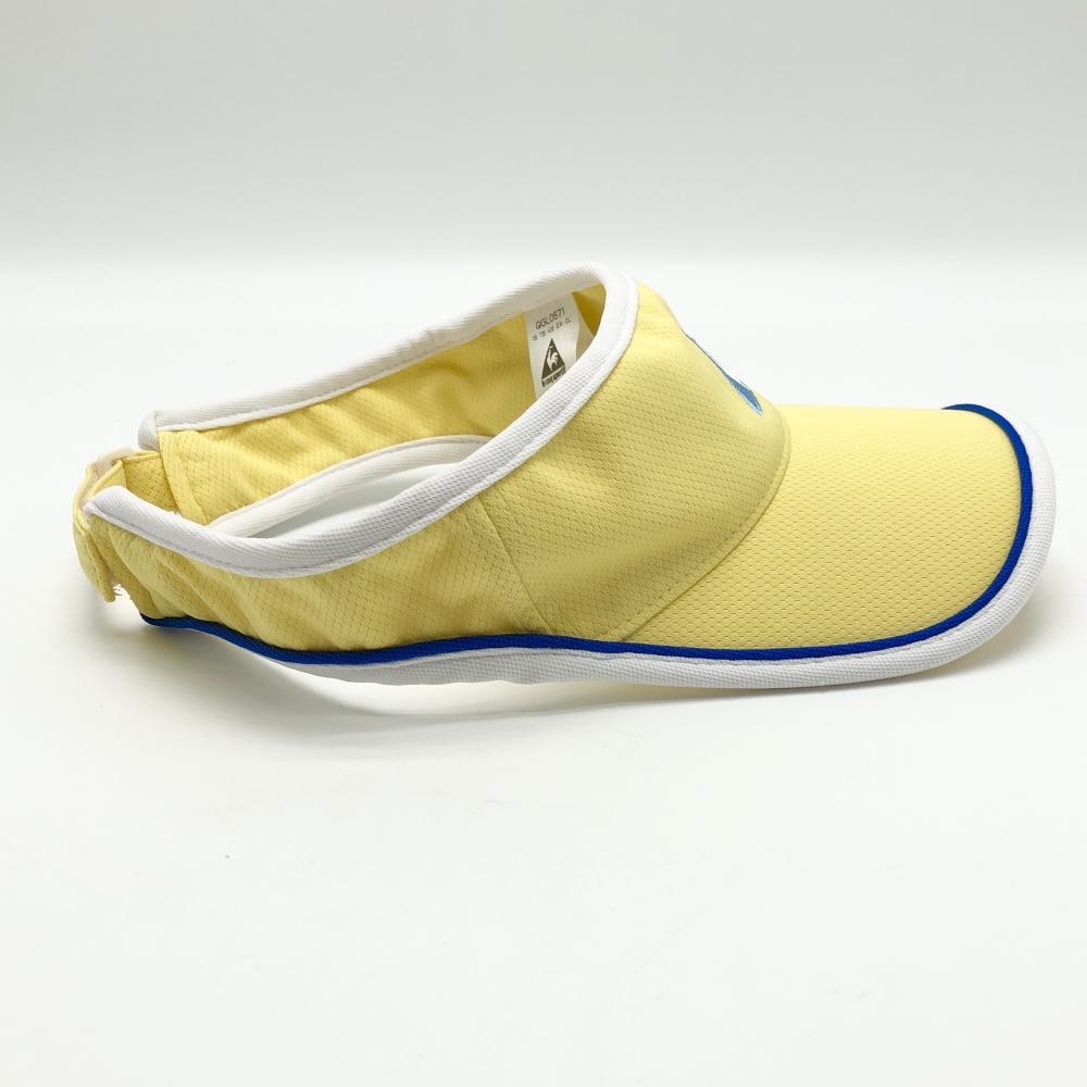 【超美品】ルコックゴルフ サンバイザー イエロー×ライトブルー ロゴ刺しゅう FREE ゴルフウェア le coq sportif