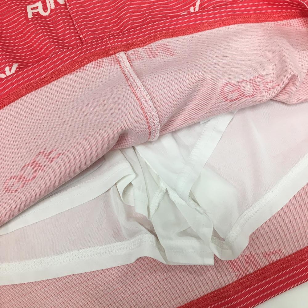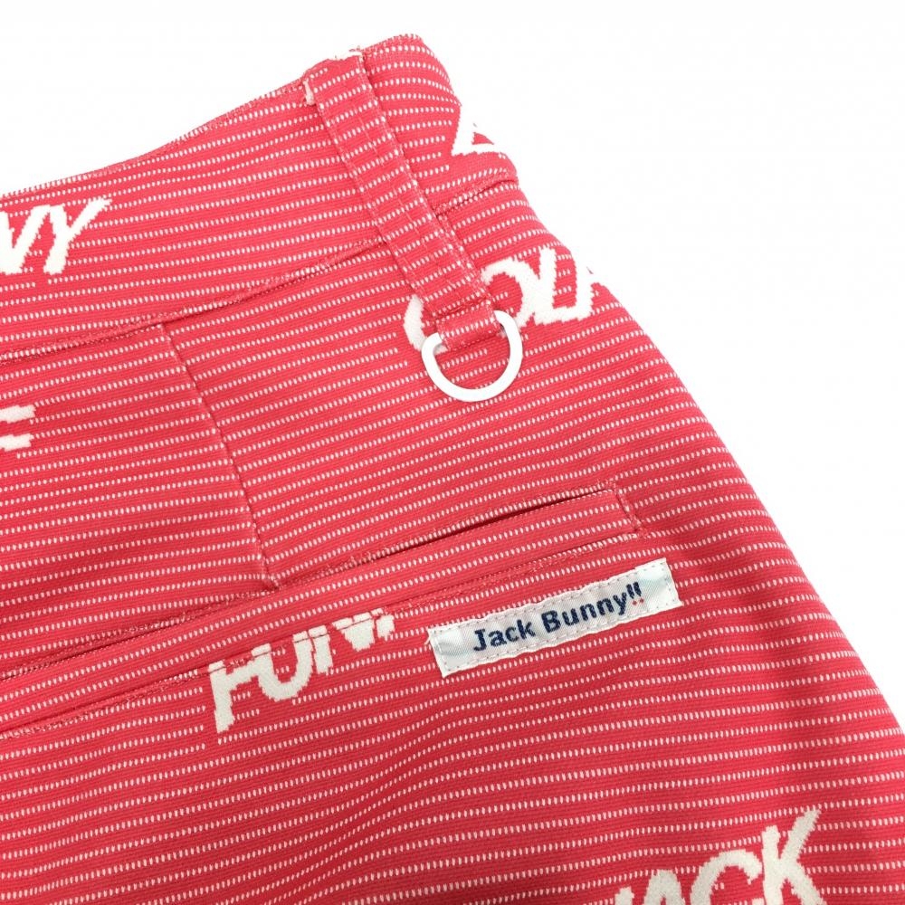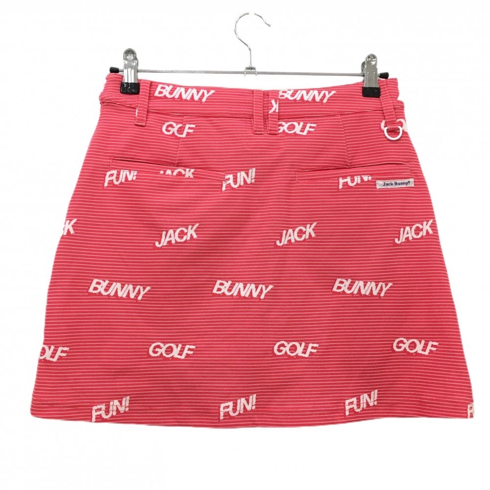 【美品】ジャックバニー スカート ピンク×白 ボーダー 英字柄 ウエスト調節紐付 レディース 2(L) ゴルフウェア 2023年モデル Jack Bunny
