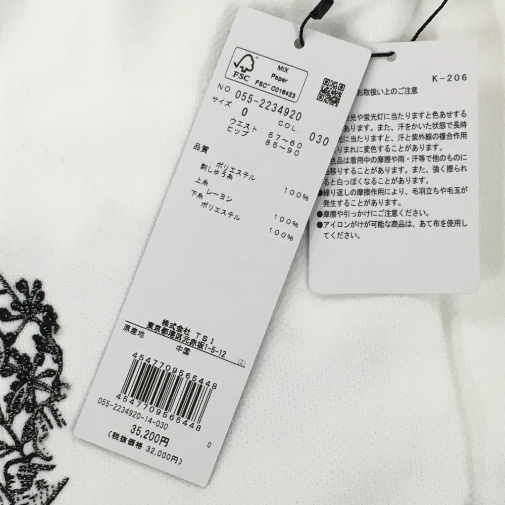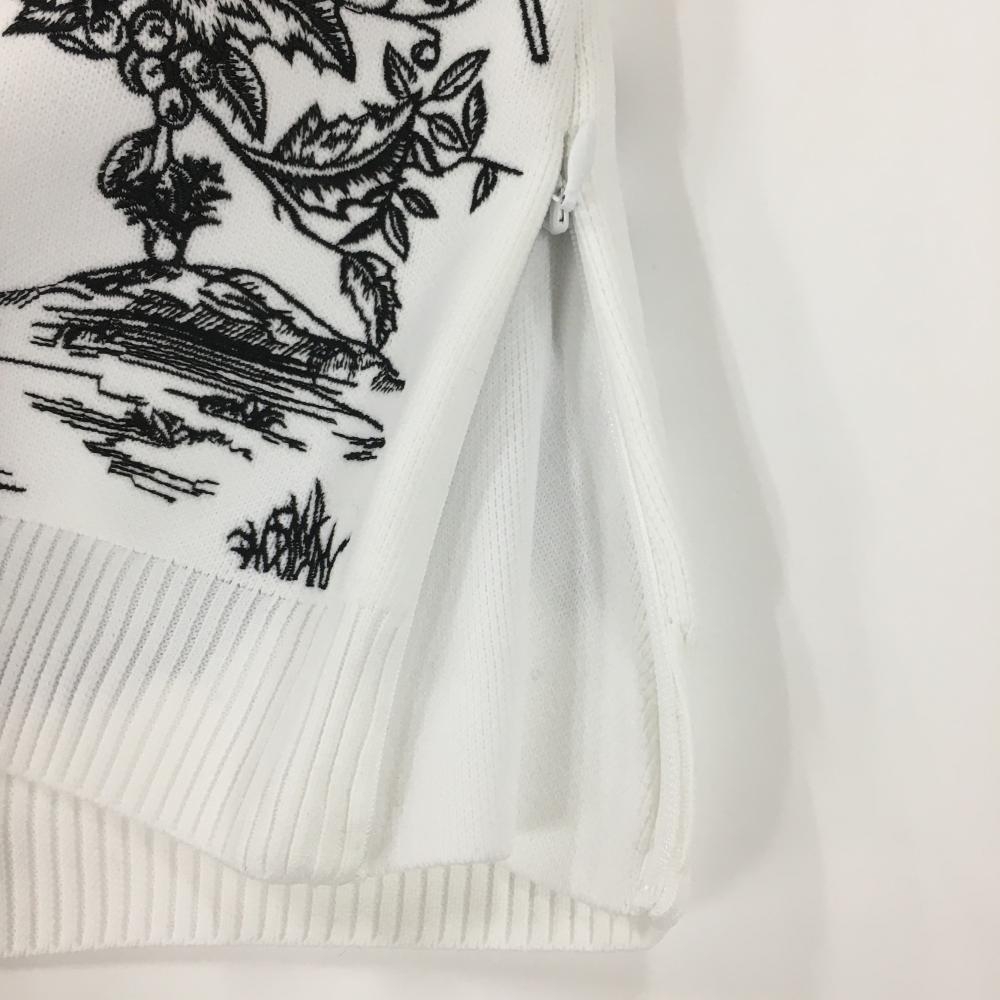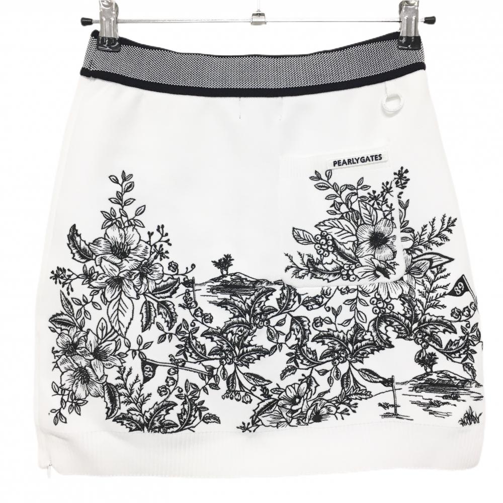 【新品】パーリーゲイツ ニットスカート 白×黒 花刺しゅう柄 レディース 0(S) ゴルフウェア PEARLY GATES