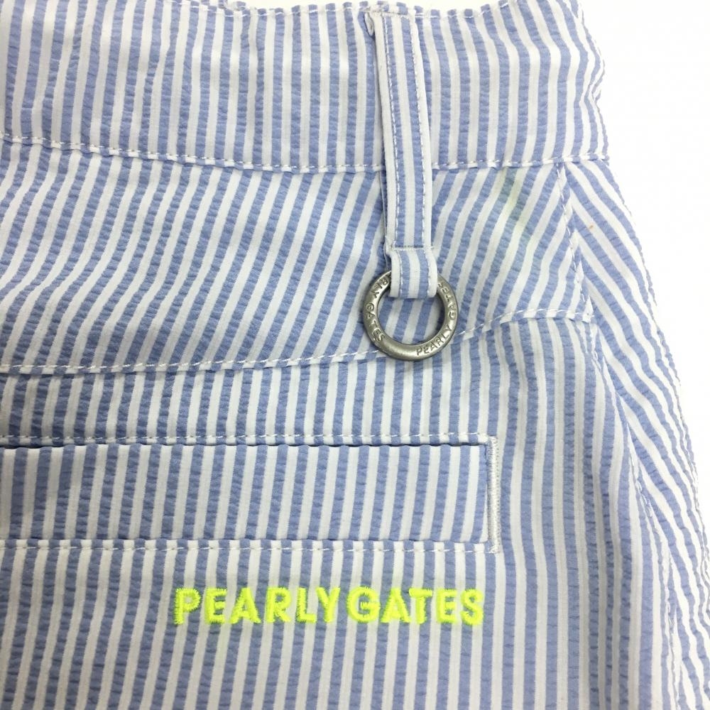 パーリーゲイツ スカート ライトブルー×白 ストライプ サッカー生地 レディース 0(S) ゴルフウェア PEARLY GATES