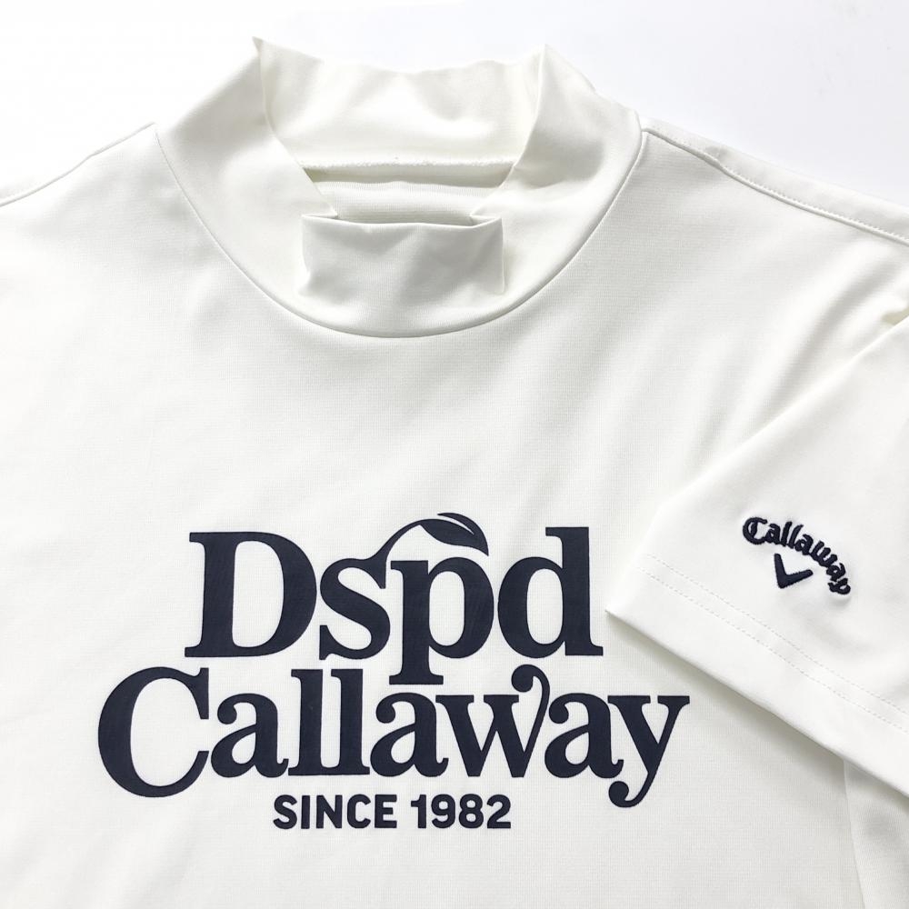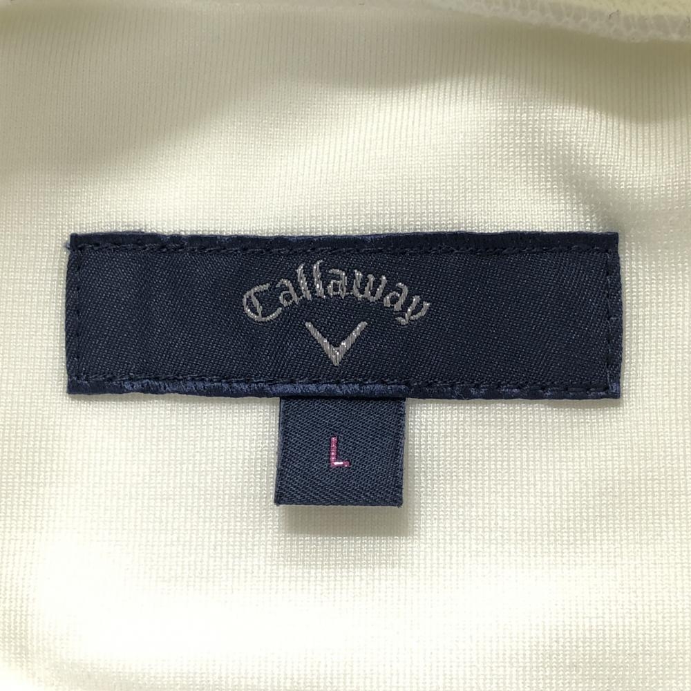 【超美品】キャロウェイ 半袖ハイネックシャツ 白 フロントロゴネイビー レディース L ゴルフウェア Callaway