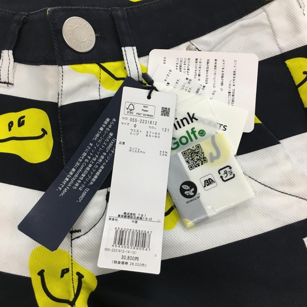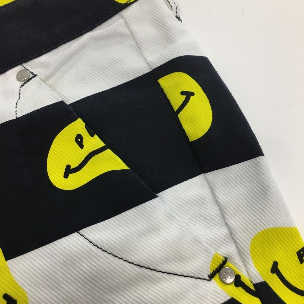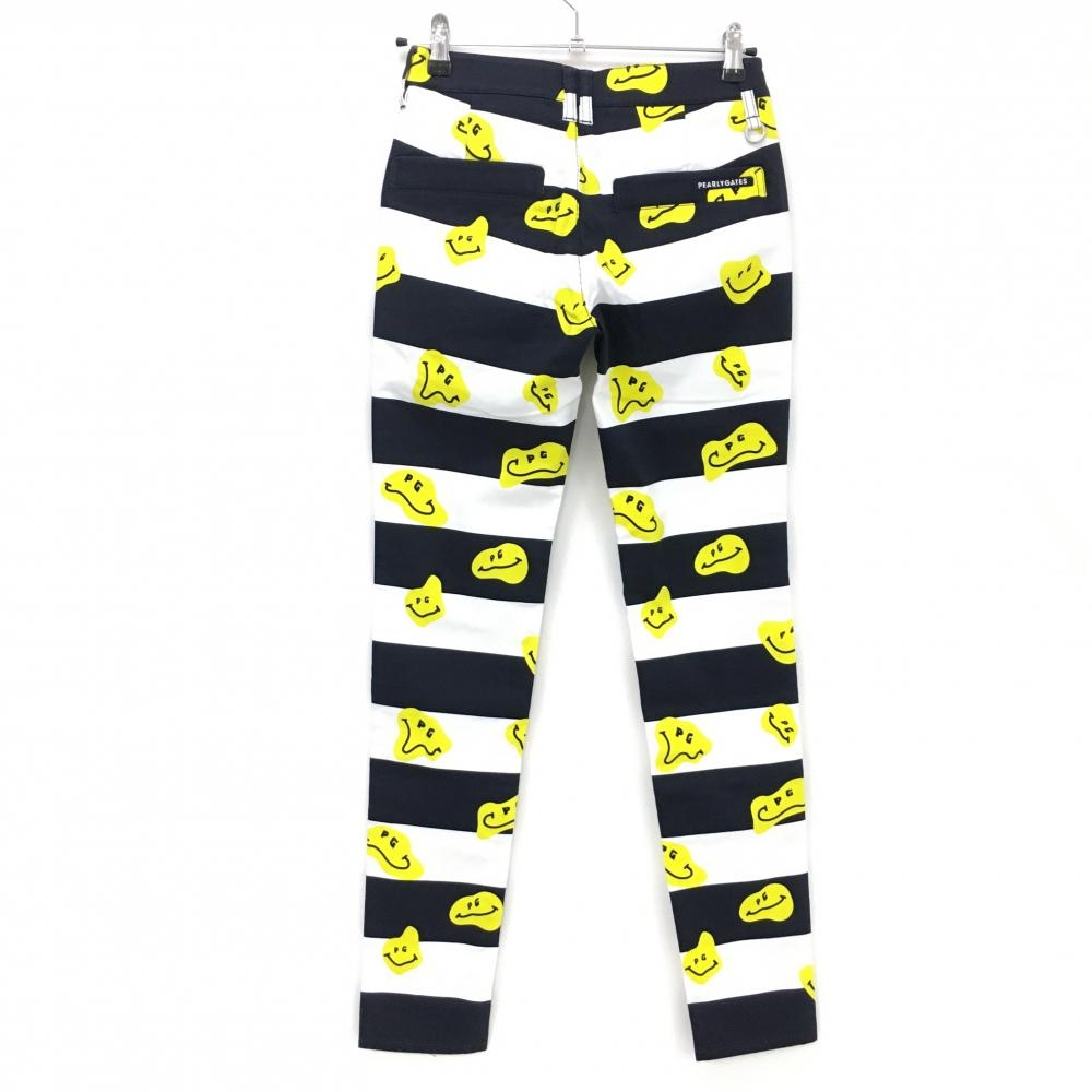 【新品】パーリーゲイツ パンツ 白×ネイビー×イエロー ボーダー ニコちゃん スマイル レディース 0(S) ゴルフウェア PEARLY GATES