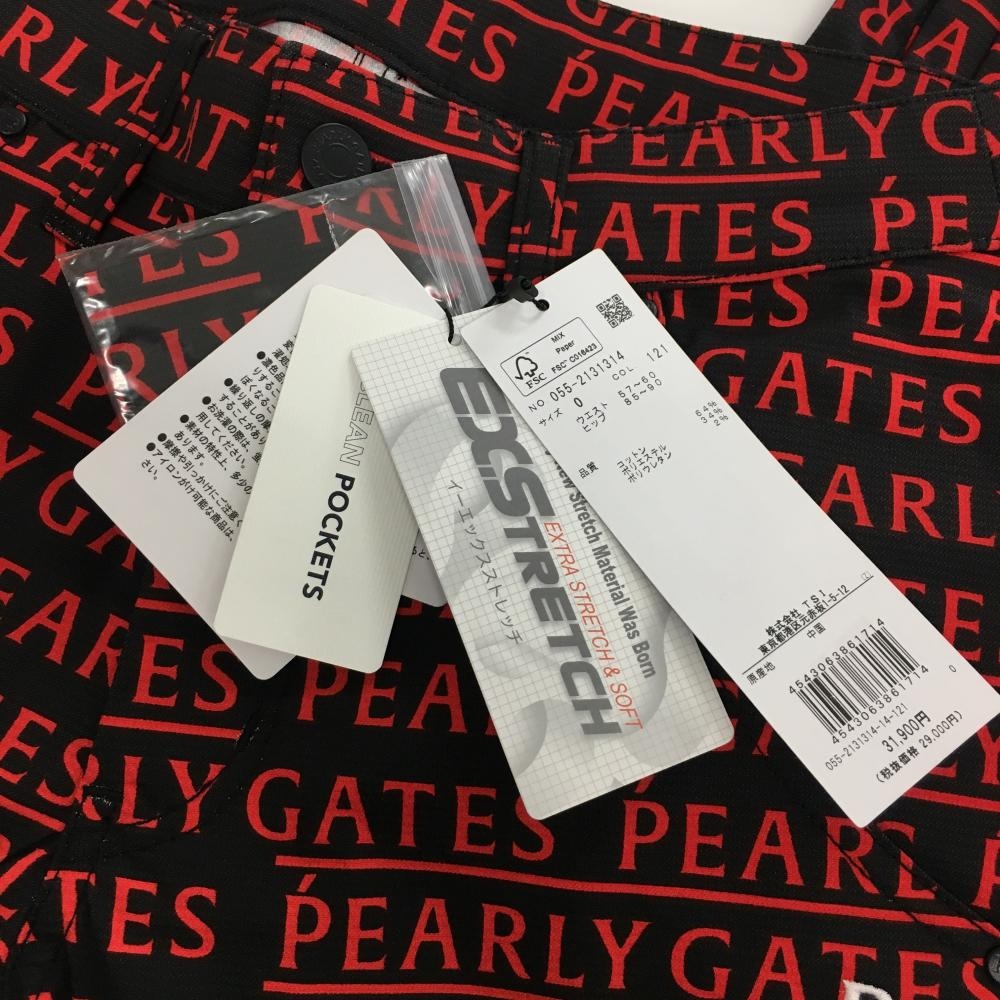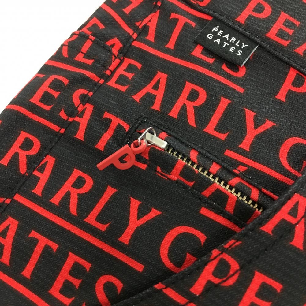 【新品】パーリーゲイツ パンツ 黒×レッド ロゴ総柄 レディース 0(S) ゴルフウェア PEARLY GATES