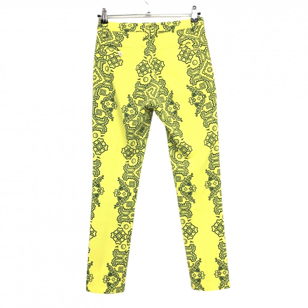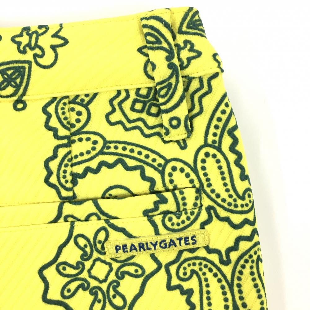 【新品】パーリーゲイツ パンツ イエロー×グリーン 総柄 裏地ニコちゃん レディース 00(XS) ゴルフウェア PEARLY GATES