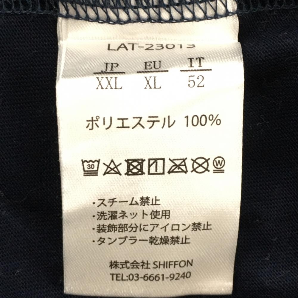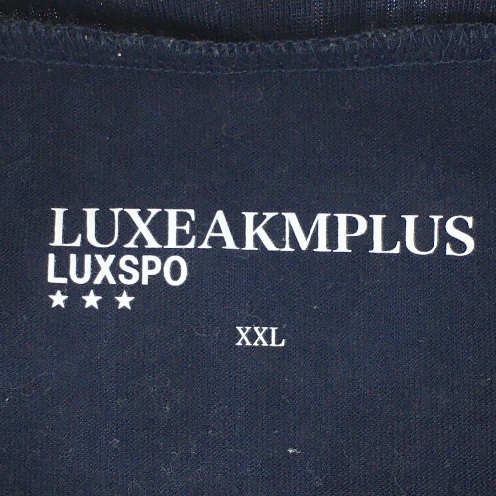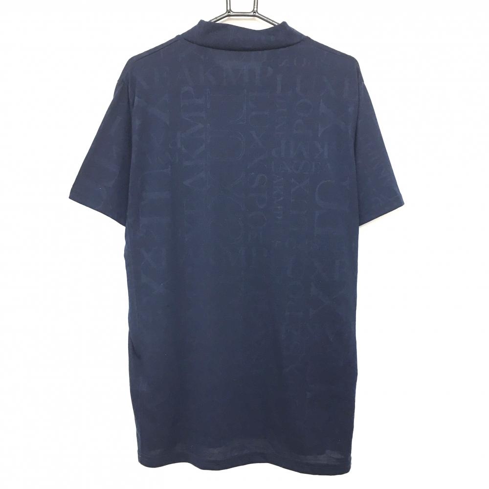 リュクスエイケイエムプラス 半袖ハイネックシャツ ネイビー ロゴ地模様 メンズ XXL ゴルフウェア 大きいサイズ LUXEAKMPLUS