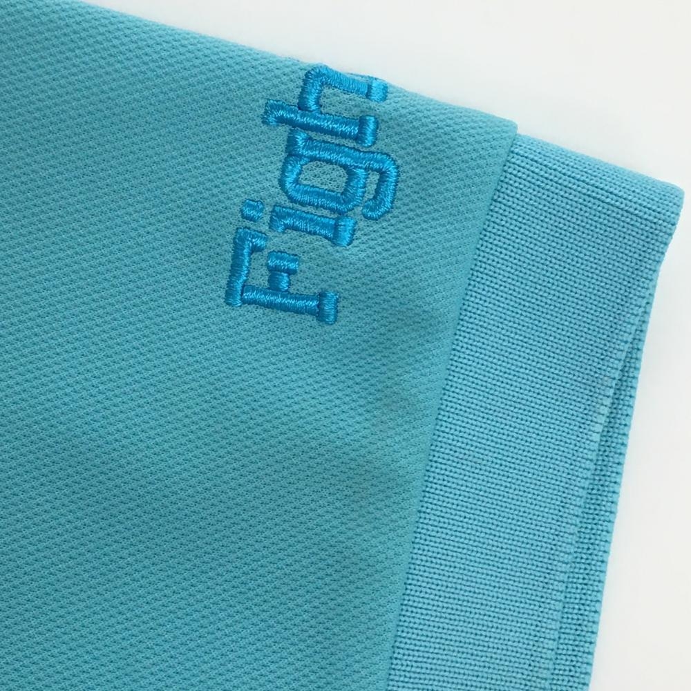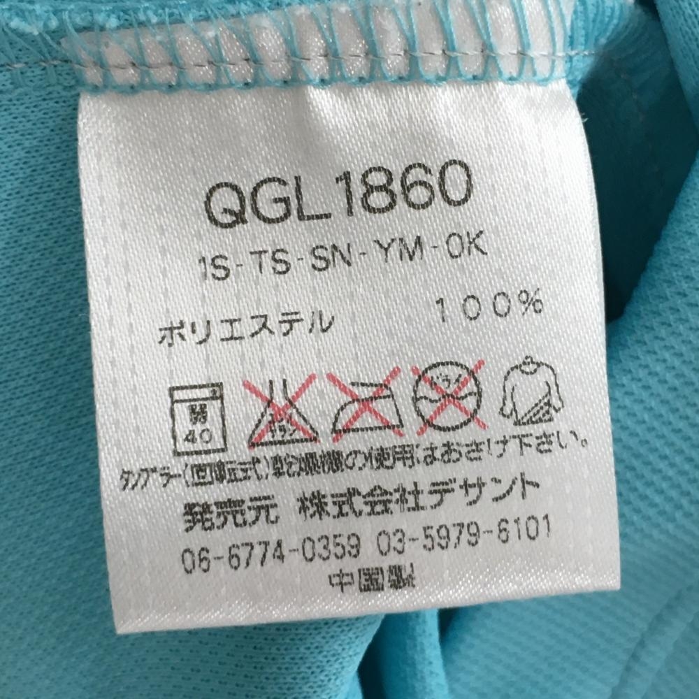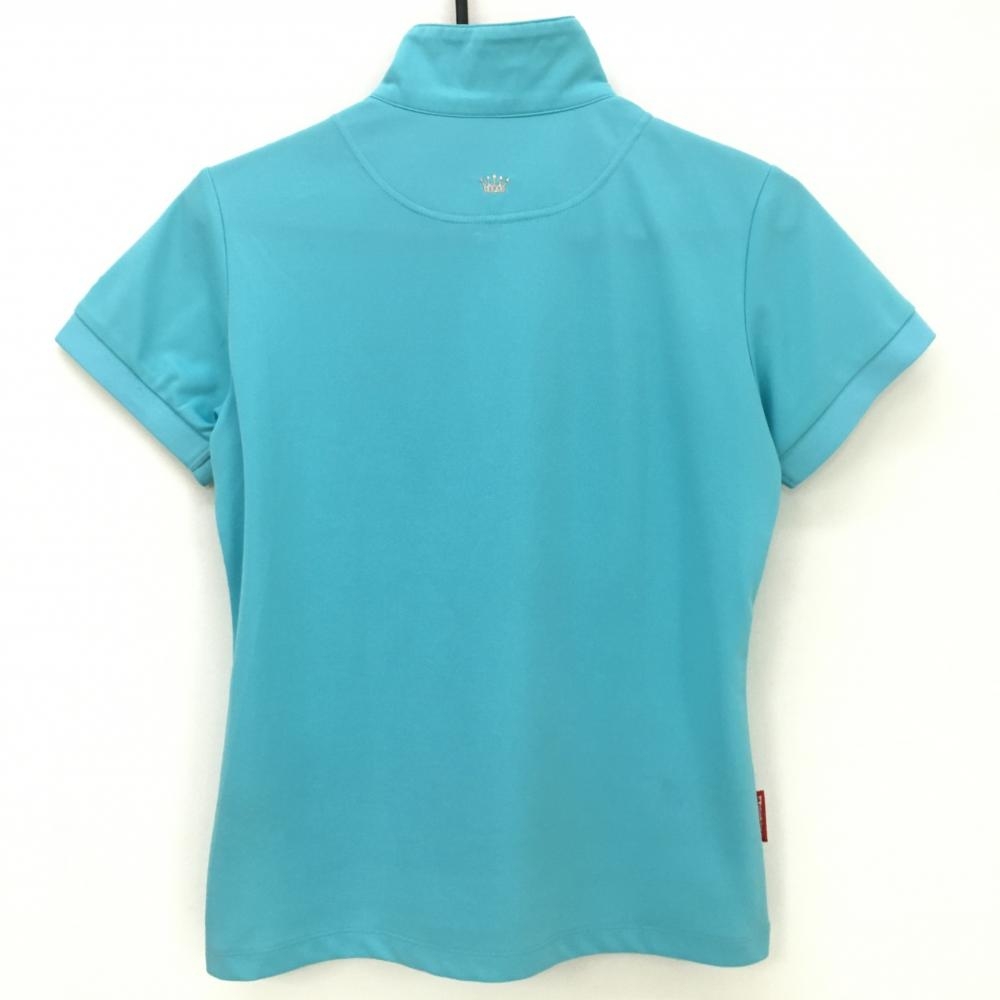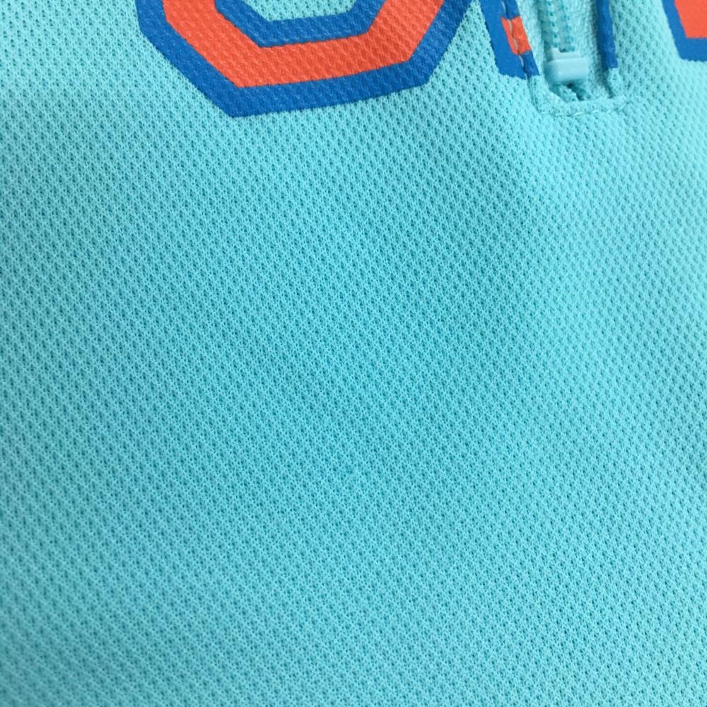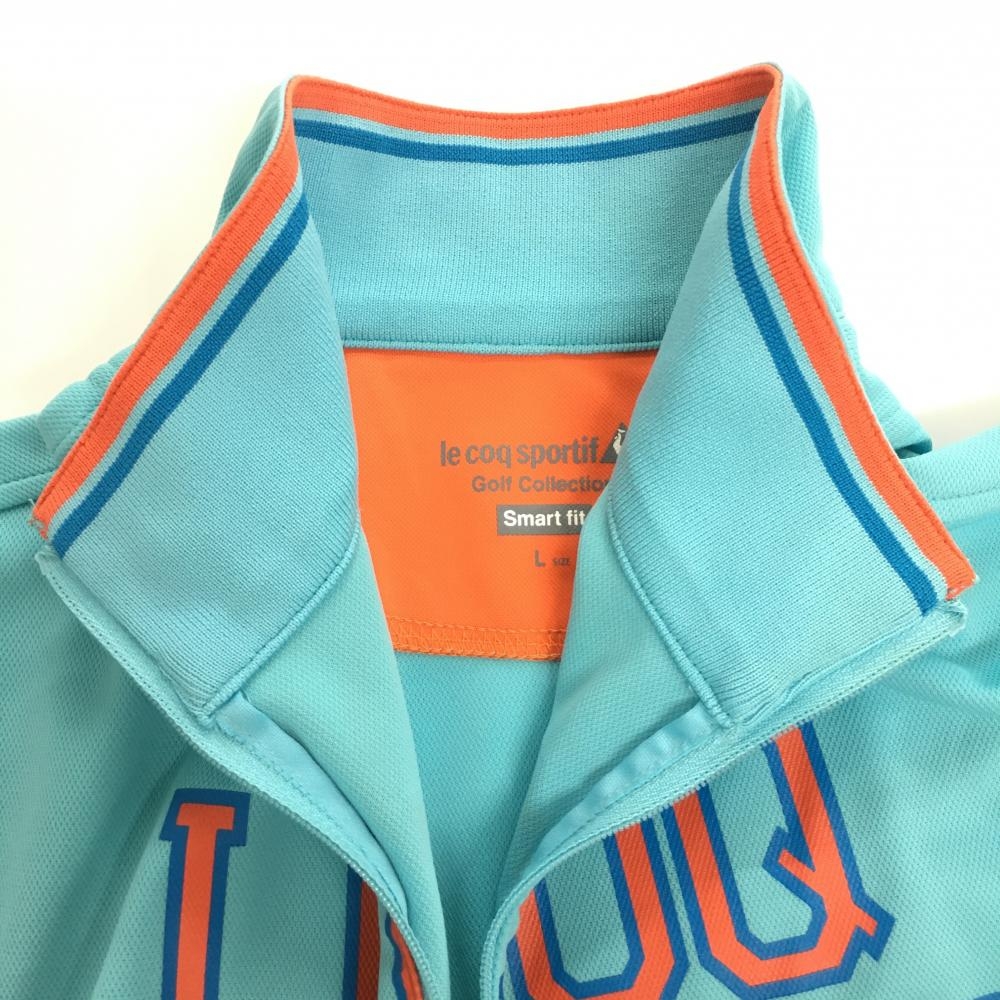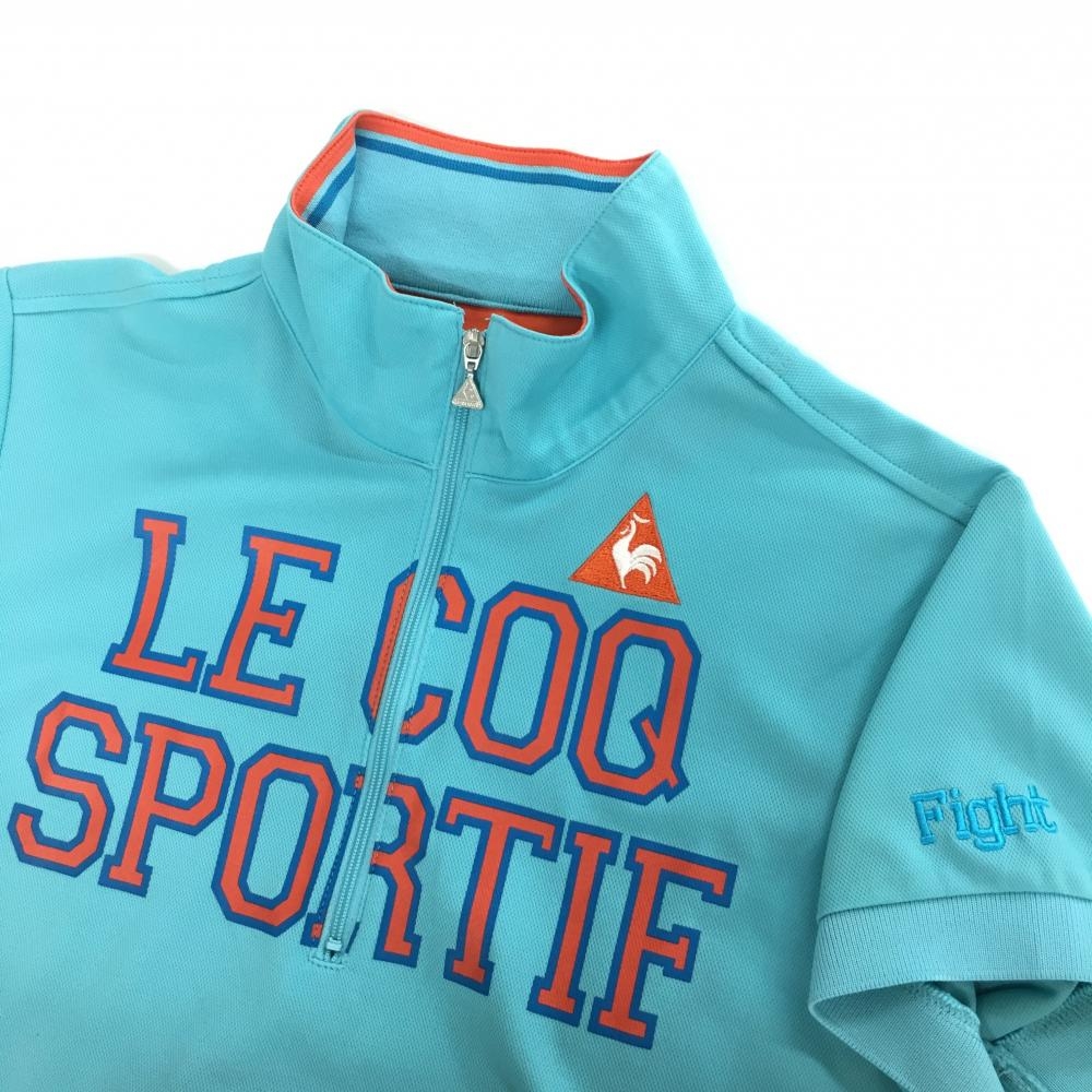 ルコックゴルフ 半袖ハイネックシャツ ライトブルー×オレンジ フロントロゴ ハーフジップ レディース L ゴルフウェア le coq sportif