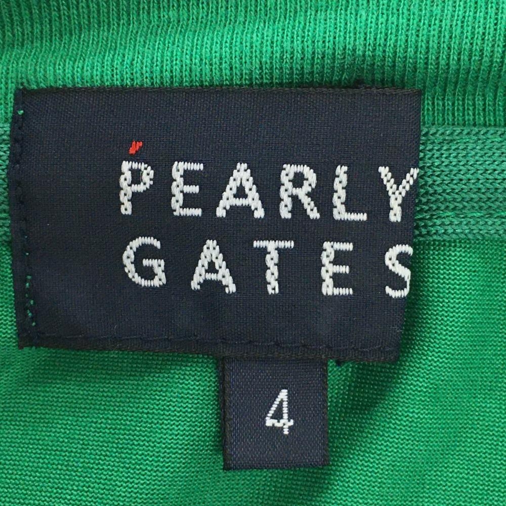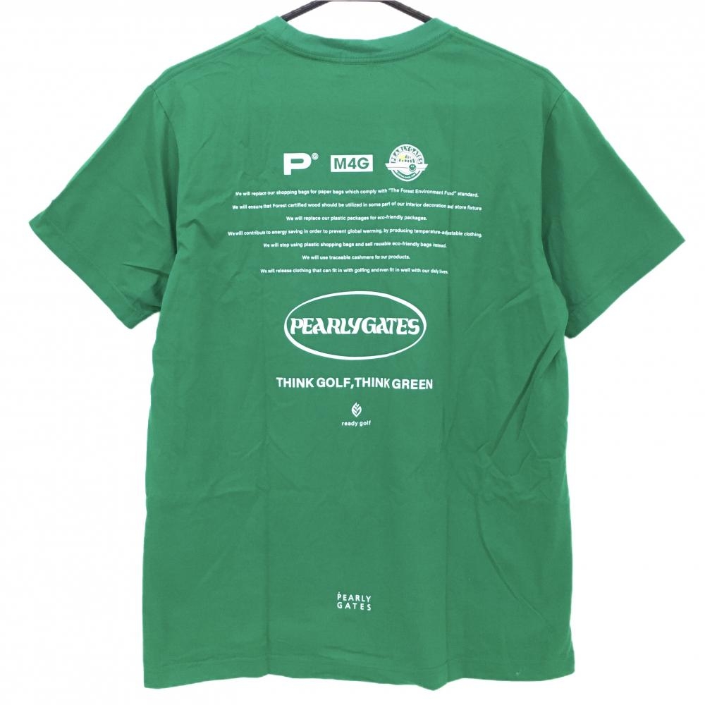 【美品】パーリーゲイツ Tシャツ グリーン×白 ニコちゃん スマイル コットン混 バックプリント メンズ 4(M) ゴルフウェア PEARLY GATES