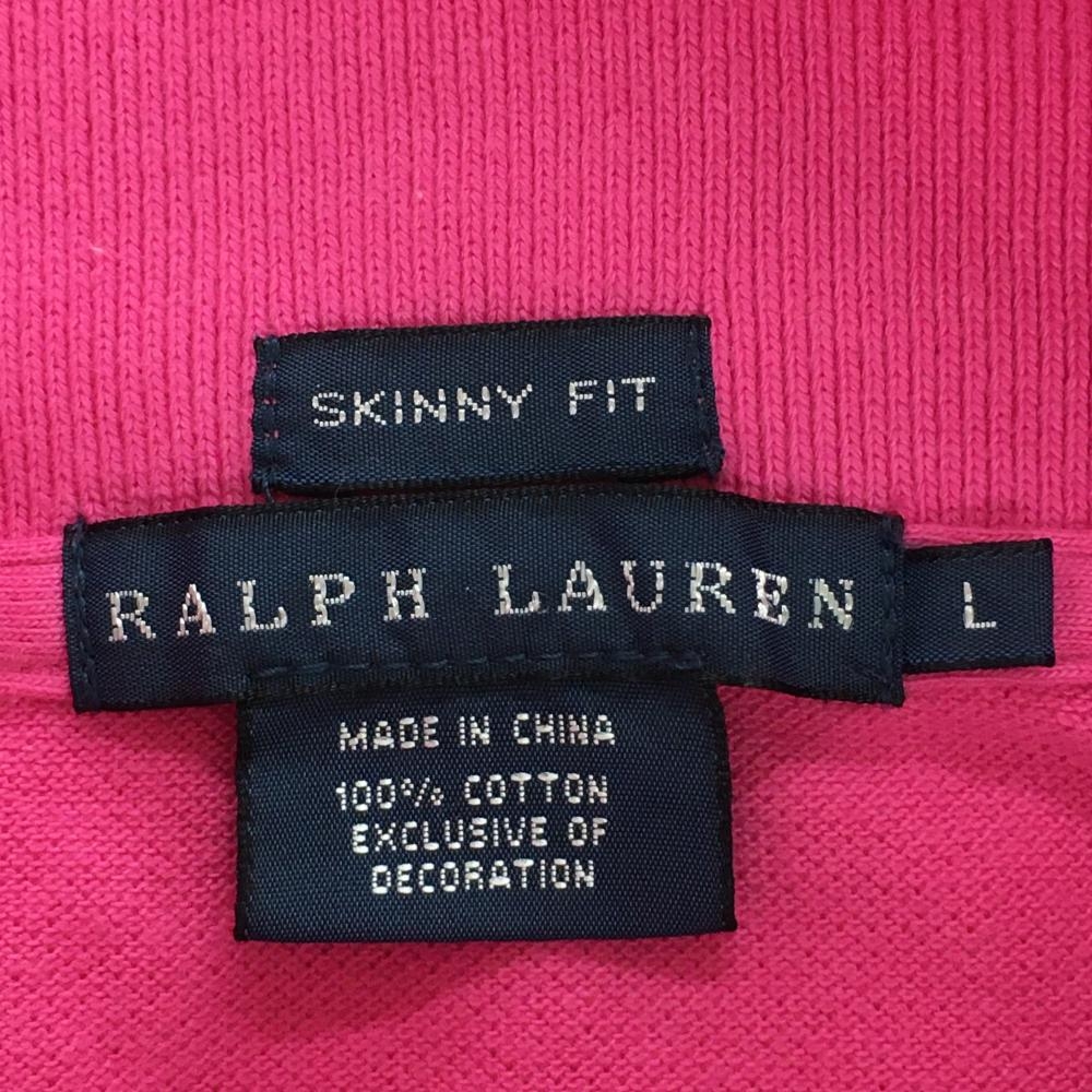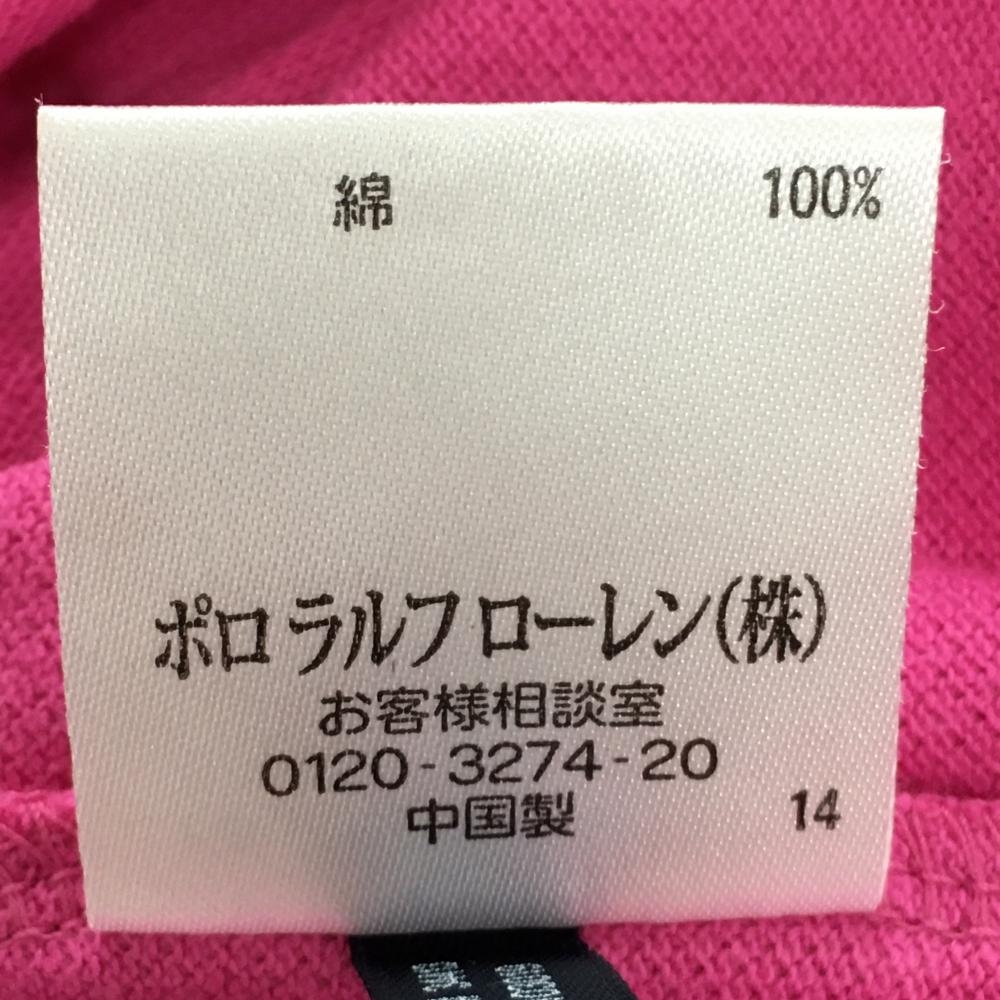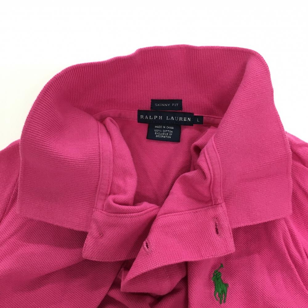 ラルフローレン 半袖ポロシャツ ピンク ロゴグリーン レディース L ゴルフウェア Ralph Lauren