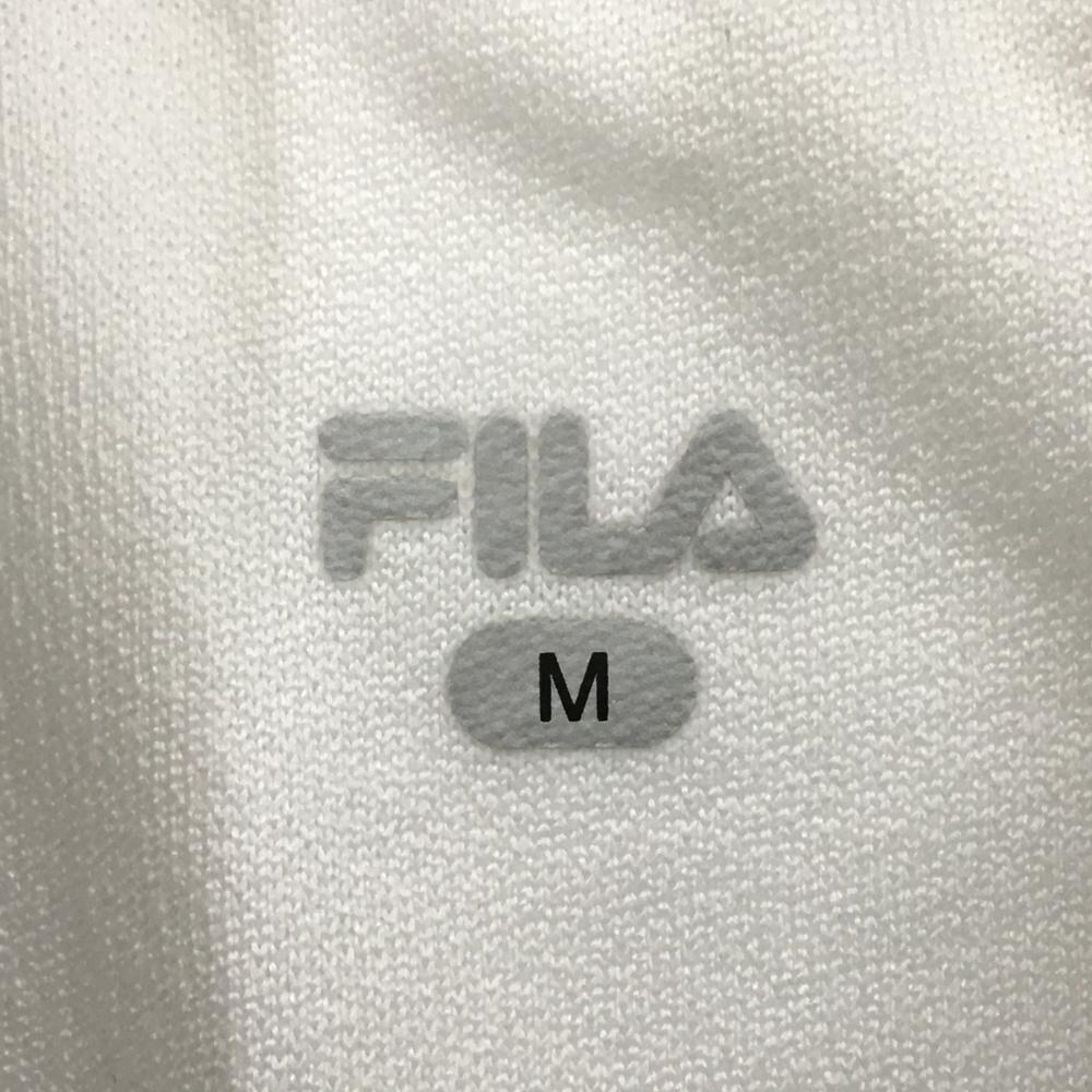 【美品】フィラゴルフ 半袖ポロシャツ 白 袖プリーツ ワッペン レディース M ゴルフウェア FILA GOLF