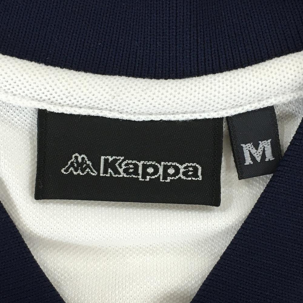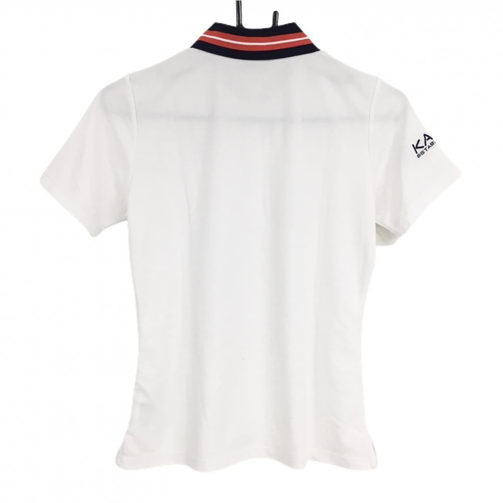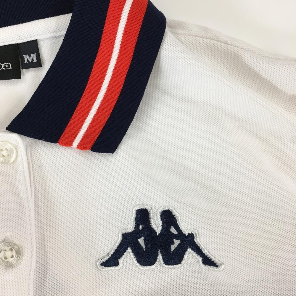 【超美品】カッパ 半袖ポロシャツ 白 ロゴネイビー 襟ライン レディース M ゴルフウェア Kappa