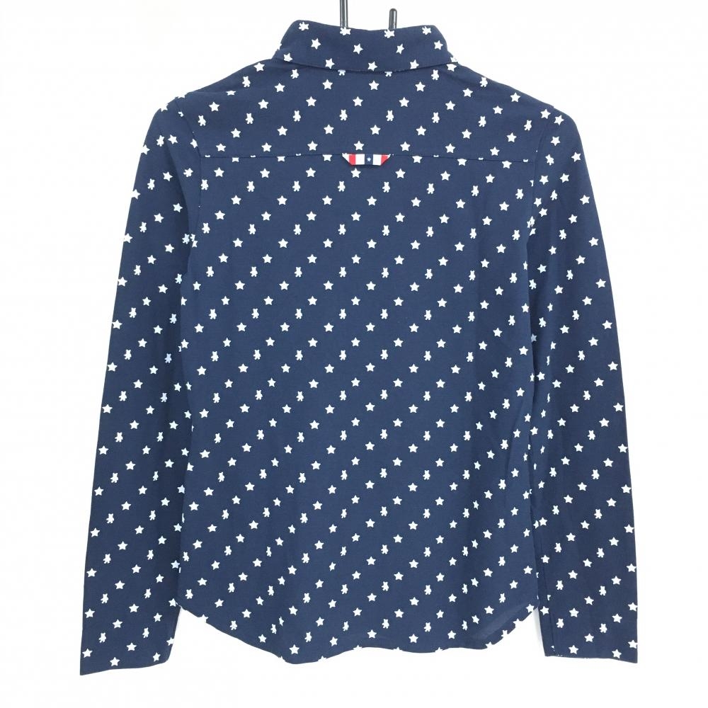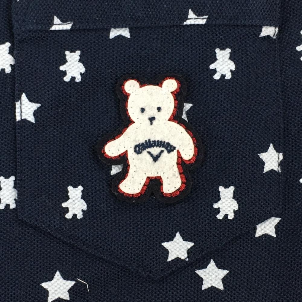 【美品】キャロウェイ 長袖ポロシャツ ネイビー×白 星・ベア総柄 ボタンダウン レディース M ゴルフウェア Callaway