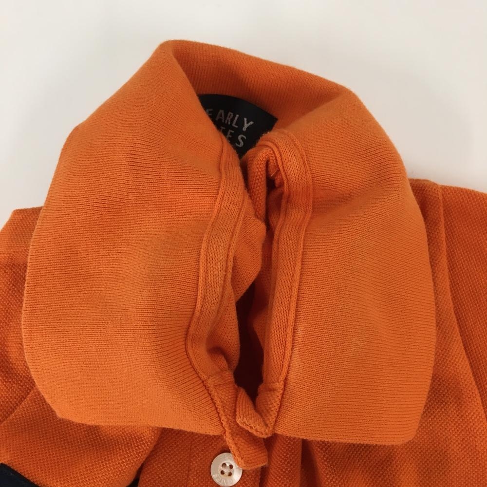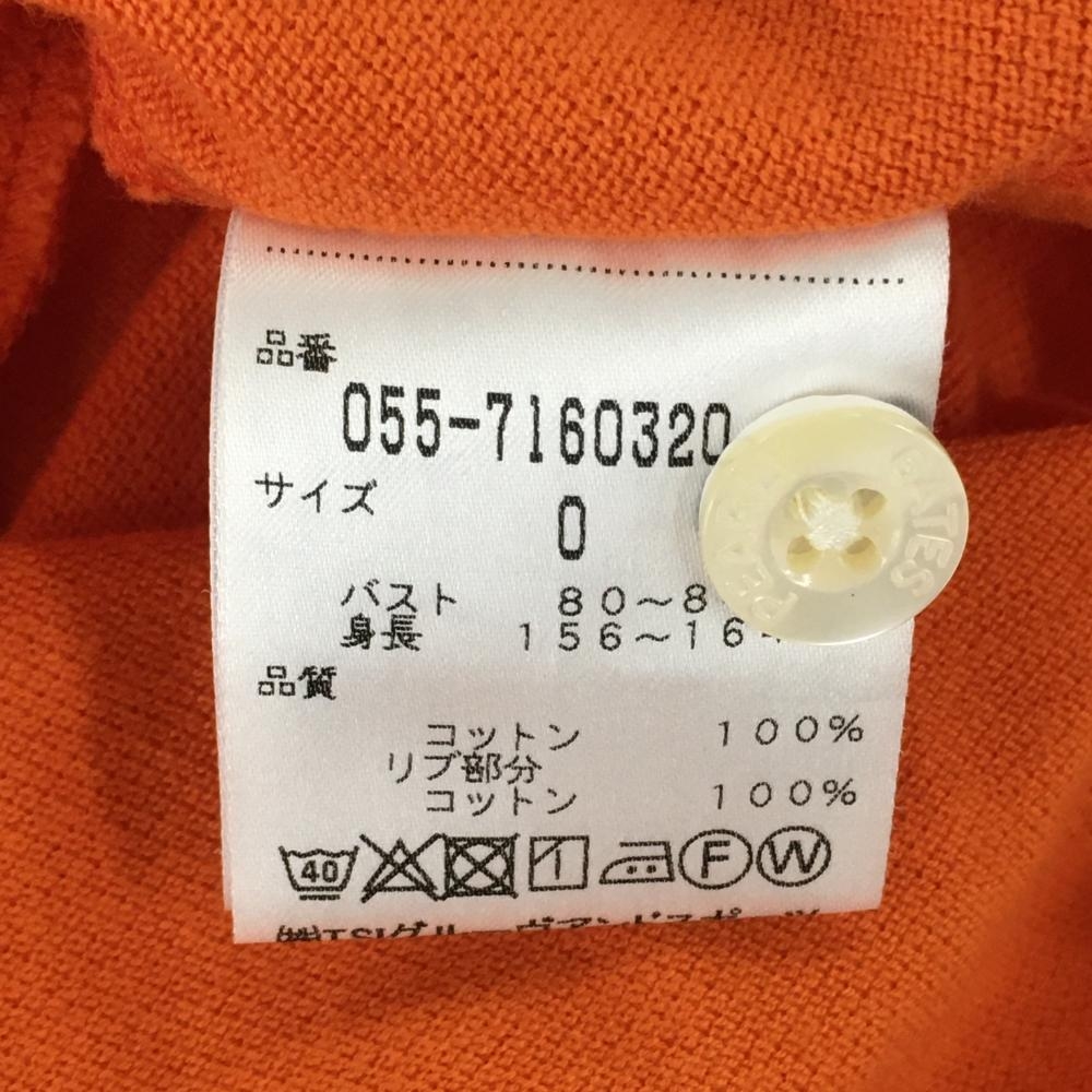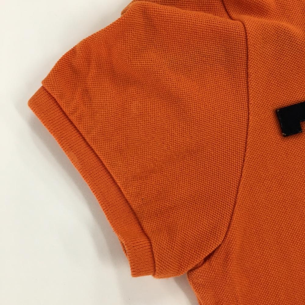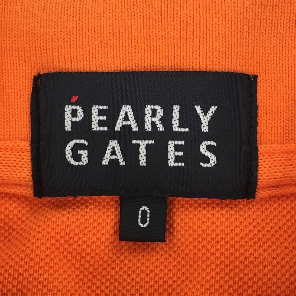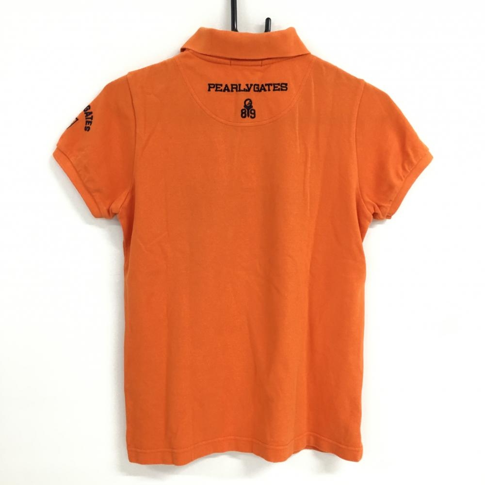 【美品】パーリーゲイツ 半袖ポロシャツ オレンジ×ネイビー コットン100% フェルトワッペン レディース 0(S) ゴルフウェア PEARLY GATES
