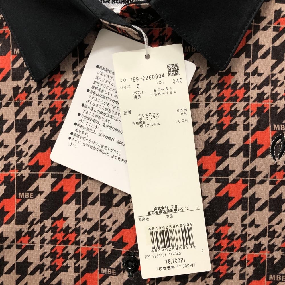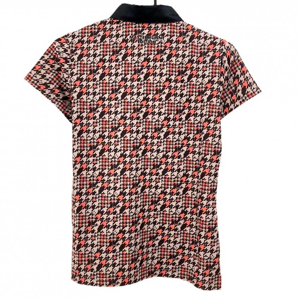 【新品】マスターバニー 半袖ポロシャツ ブラウン×オレンジ 総柄 千鳥 レディース 0(S) ゴルフウェア MASTER BUNNY EDITION