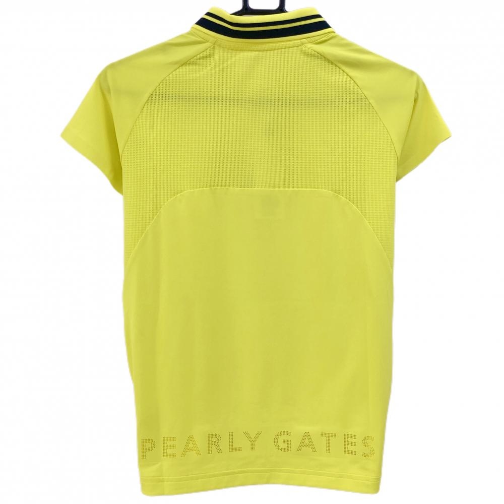 【新品】PGGパーリーゲイツ 半袖ポロシャツ イエロー×黒 一部メッシュ レディース 0(S) ゴルフウェア PEARLY GATES