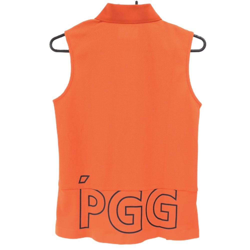 【新品】PGGパーリーゲイツ ノースリーブポロシャツ オレンジ×黒 後裾ロゴ レディース 0(S) ゴルフウェア PEARLY GATES