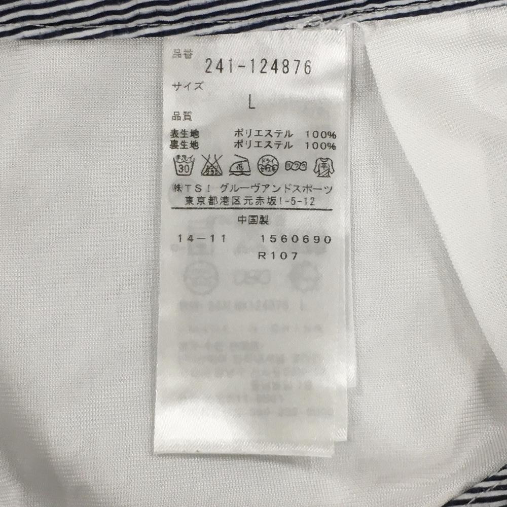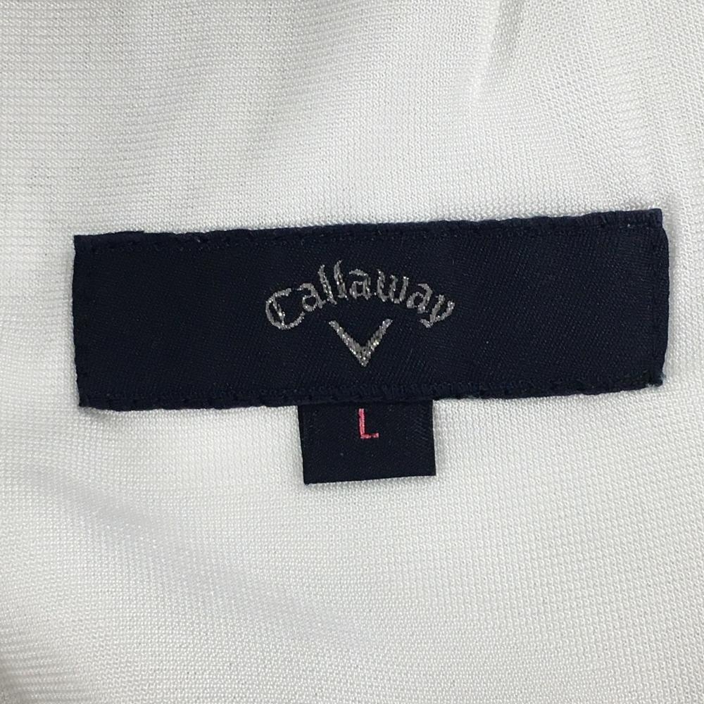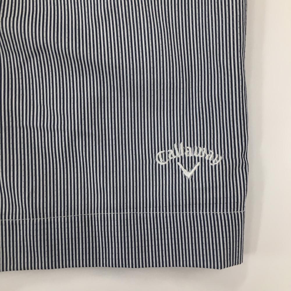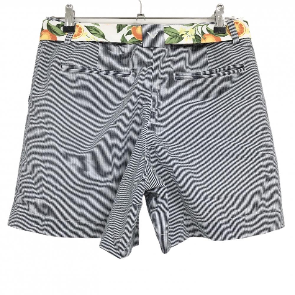 【美品】キャロウェイ キュロットスカート 白×ネイビー ストライプ柄 布ベルト付 裾ロゴ レディース L ゴルフウェア Callaway