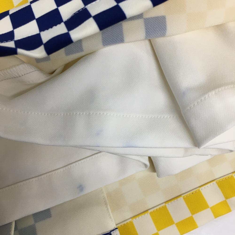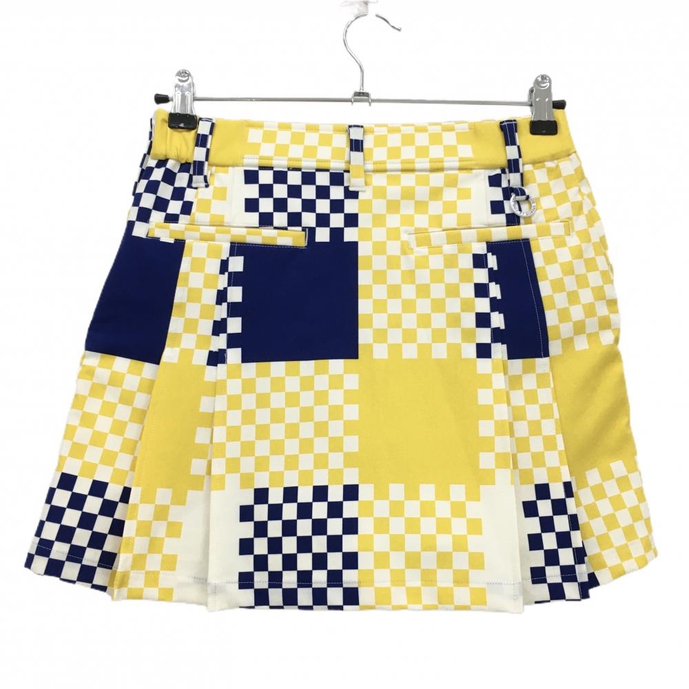 【超美品】ルコックゴルフ スカート イエロー×ネイビー ブロックチェック 内側インナーパンツ レディース 7 ゴルフウェア le coq sportif
