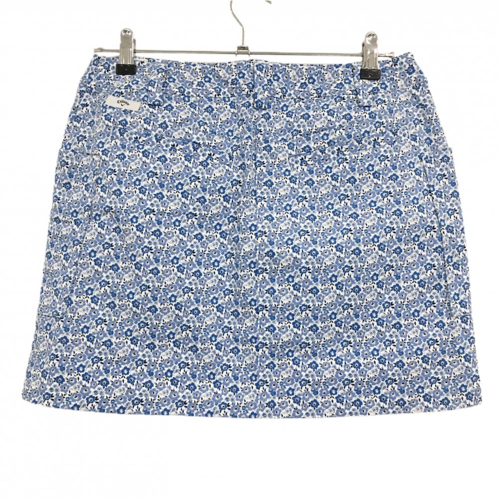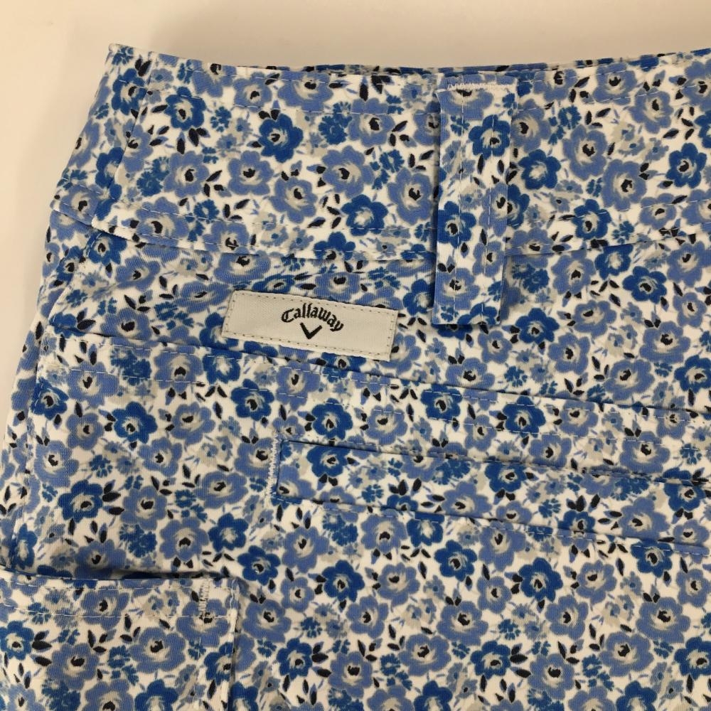 【超美品】キャロウェイ スカート 白×ブルー 花柄 バックロゴ レディース L ゴルフウェア Callaway