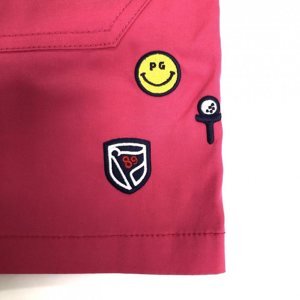 【美品】パーリーゲイツ スカート ピンク ニコちゃん スマイル ティー装着可 ストレッチ レディース 00(XS) ゴルフウェア PEARLY GATES