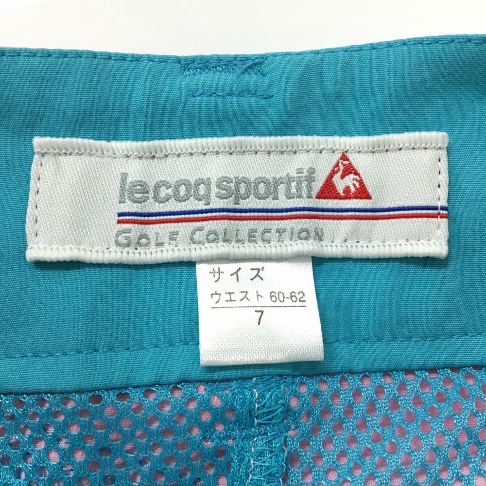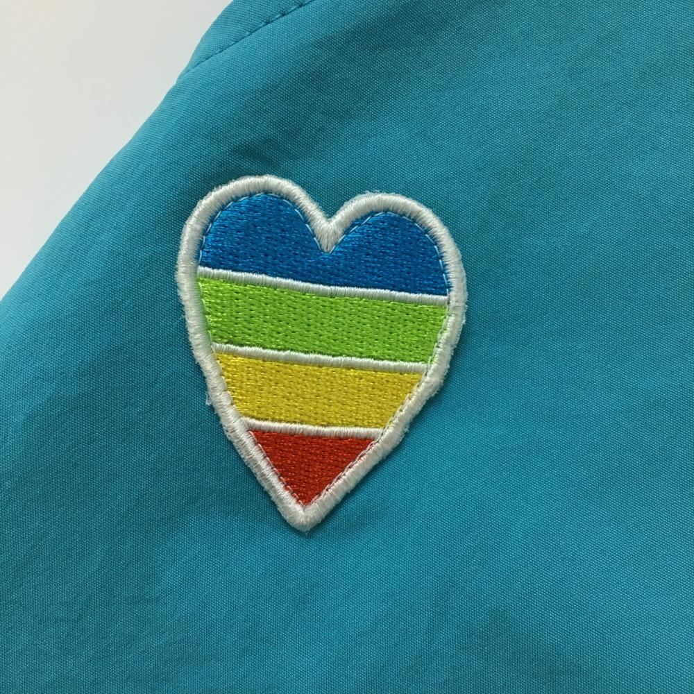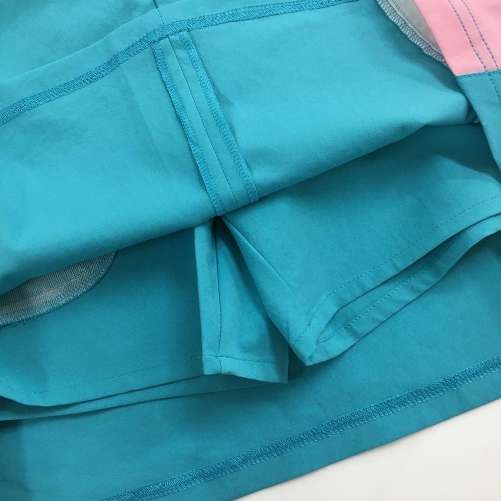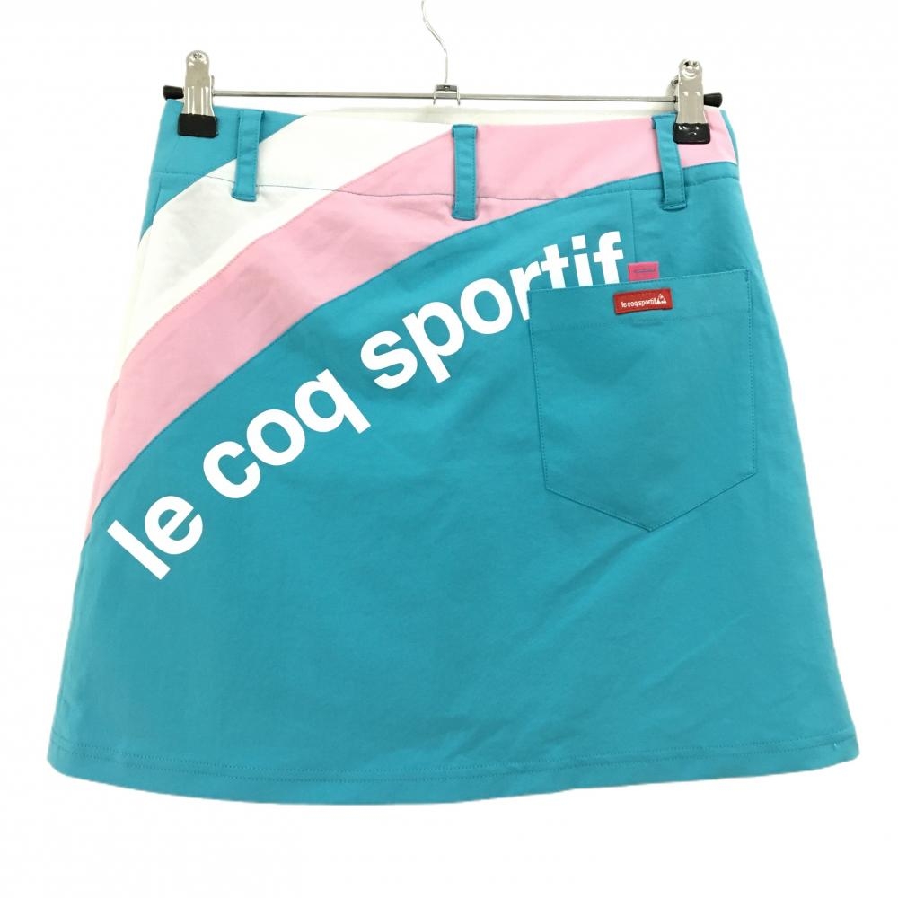 【超美品】ルコックゴルフ スカート グリーンブルー×ピンク ハートワッペン バックロゴ レディース 7 ゴルフウェア le coq sportif