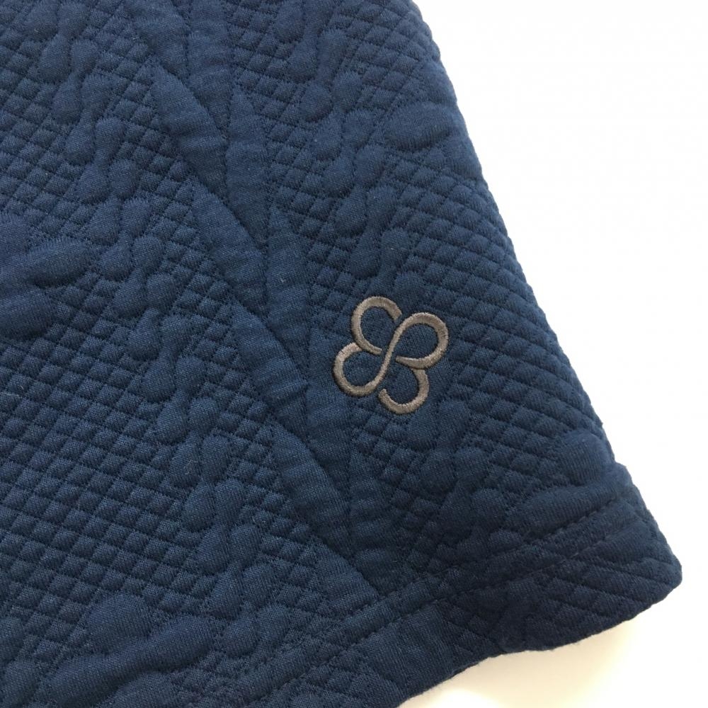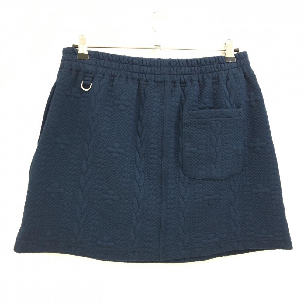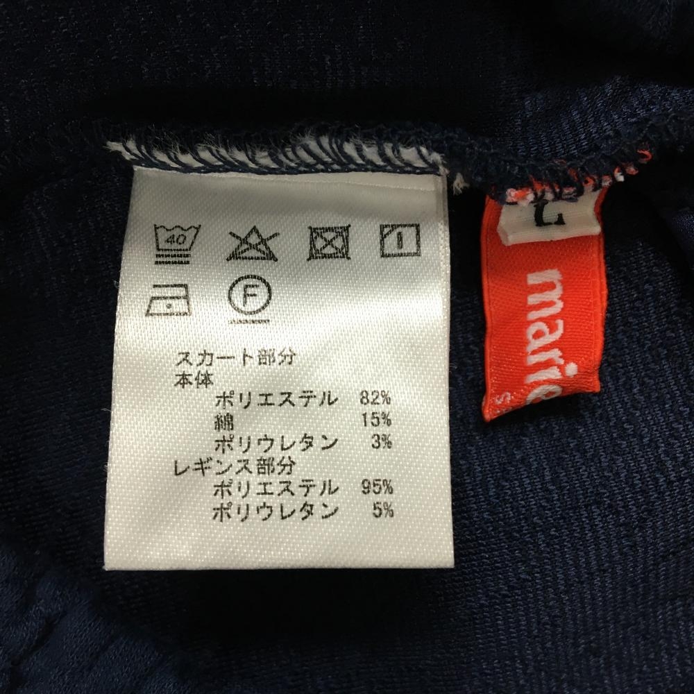 【美品】マリクレールスポール スカート ネイビー 凸凹生地 ウエストゴム 裾ロゴ レディース L ゴルフウェア marie claire