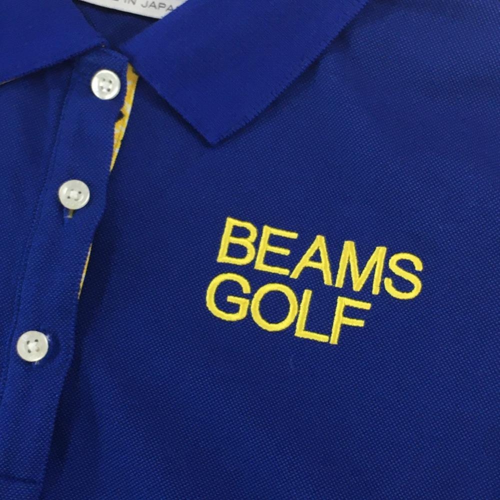 【超美品】ビームスゴルフ 半袖ポロシャツ ブルー×イエロー ロゴ刺しゅう レディース M ゴルフウェア BEAMS GOLF