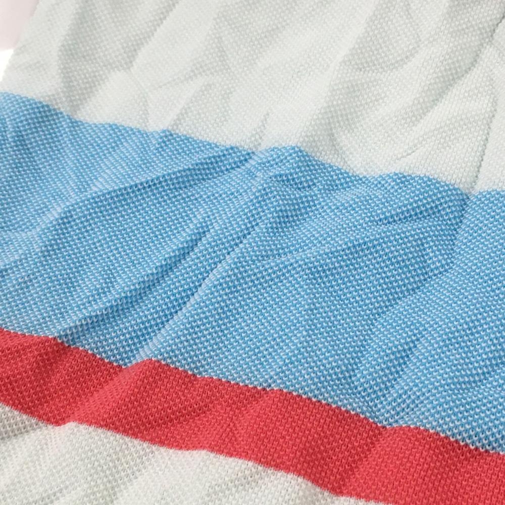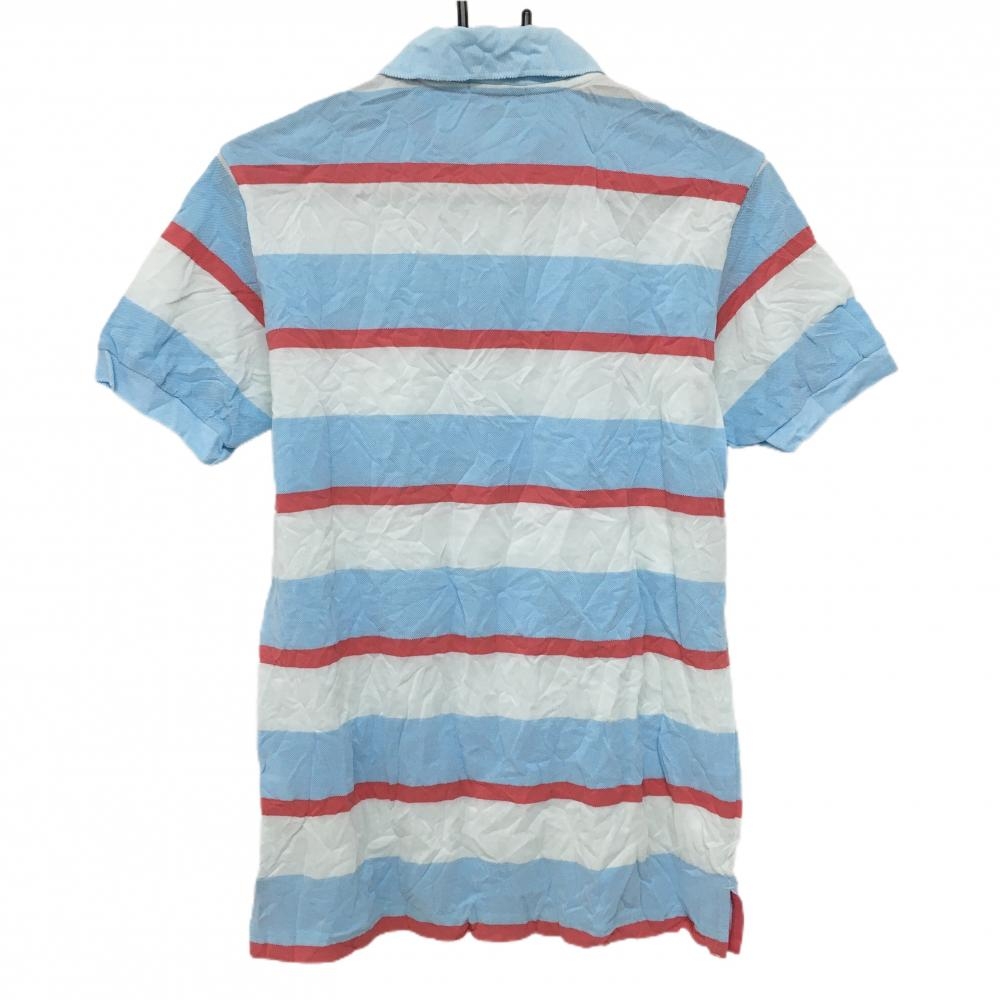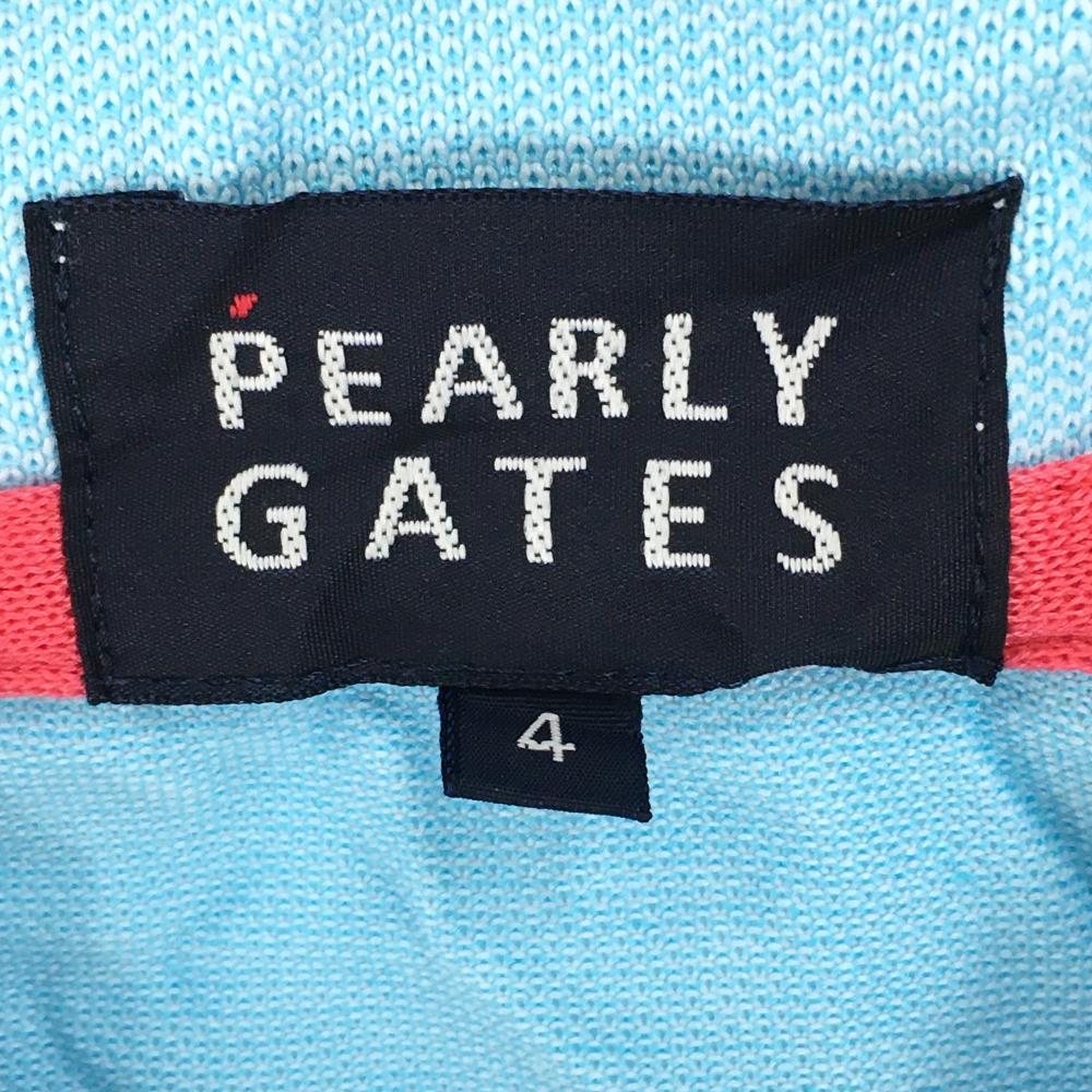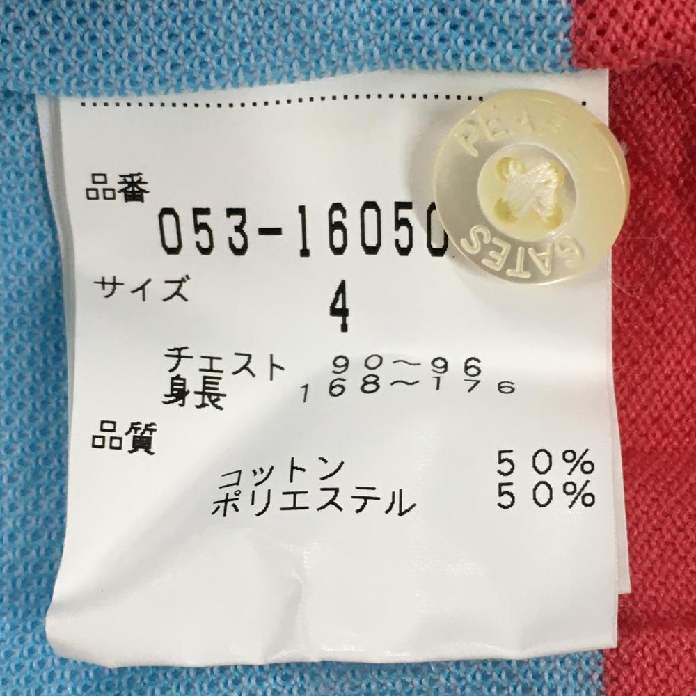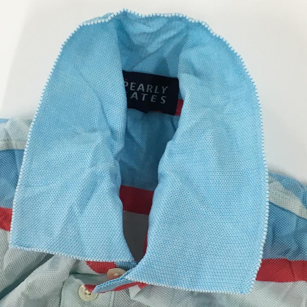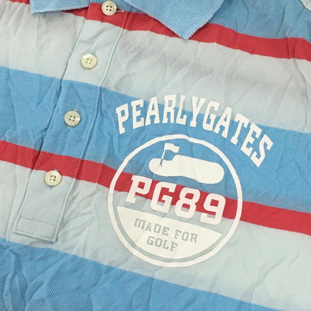 パーリーゲイツ 半袖ポロシャツ ライトブルー×ピンク ボーダー コットン混 シワ加工 メンズ 4(M) ゴルフウェア PEARLY GATES