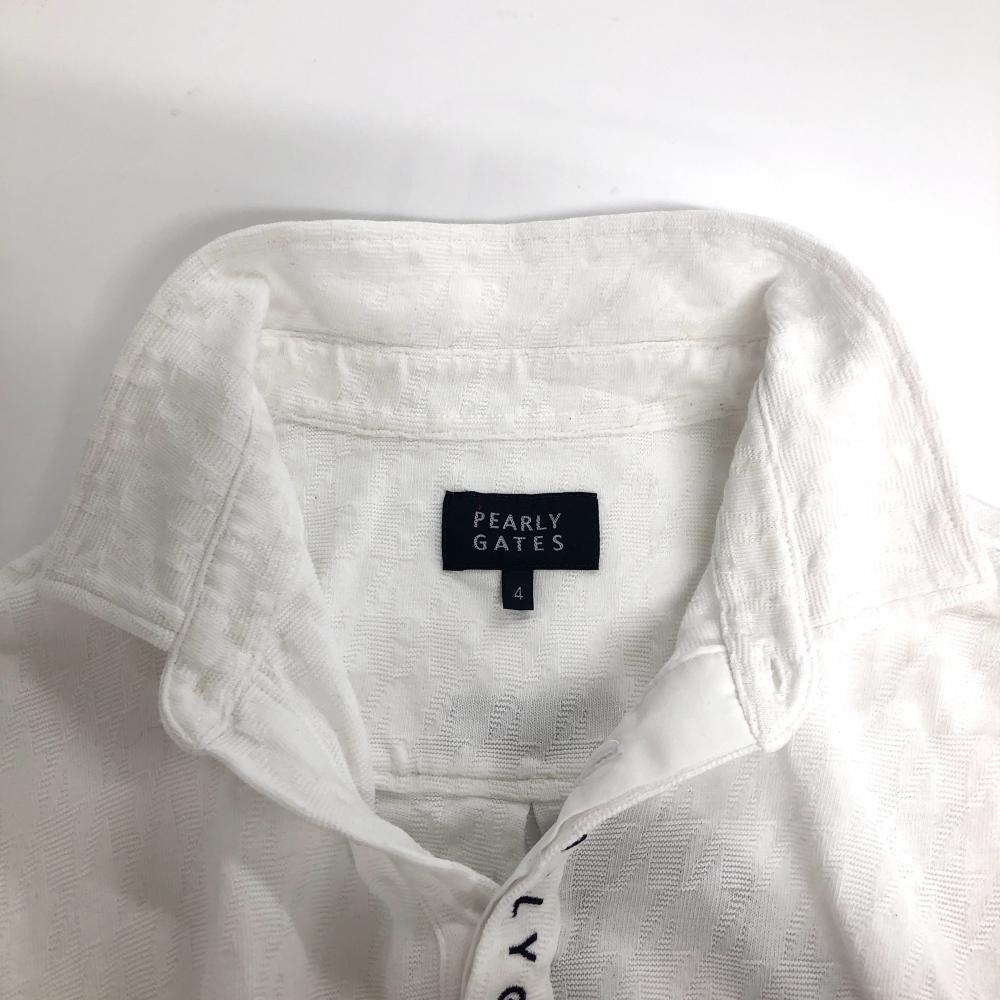 【美品】パーリーゲイツ 半袖ポロシャツ 白 千鳥格子 コットン100% メンズ 4(M) ゴルフウェア 2023年モデル PEARLY GATES