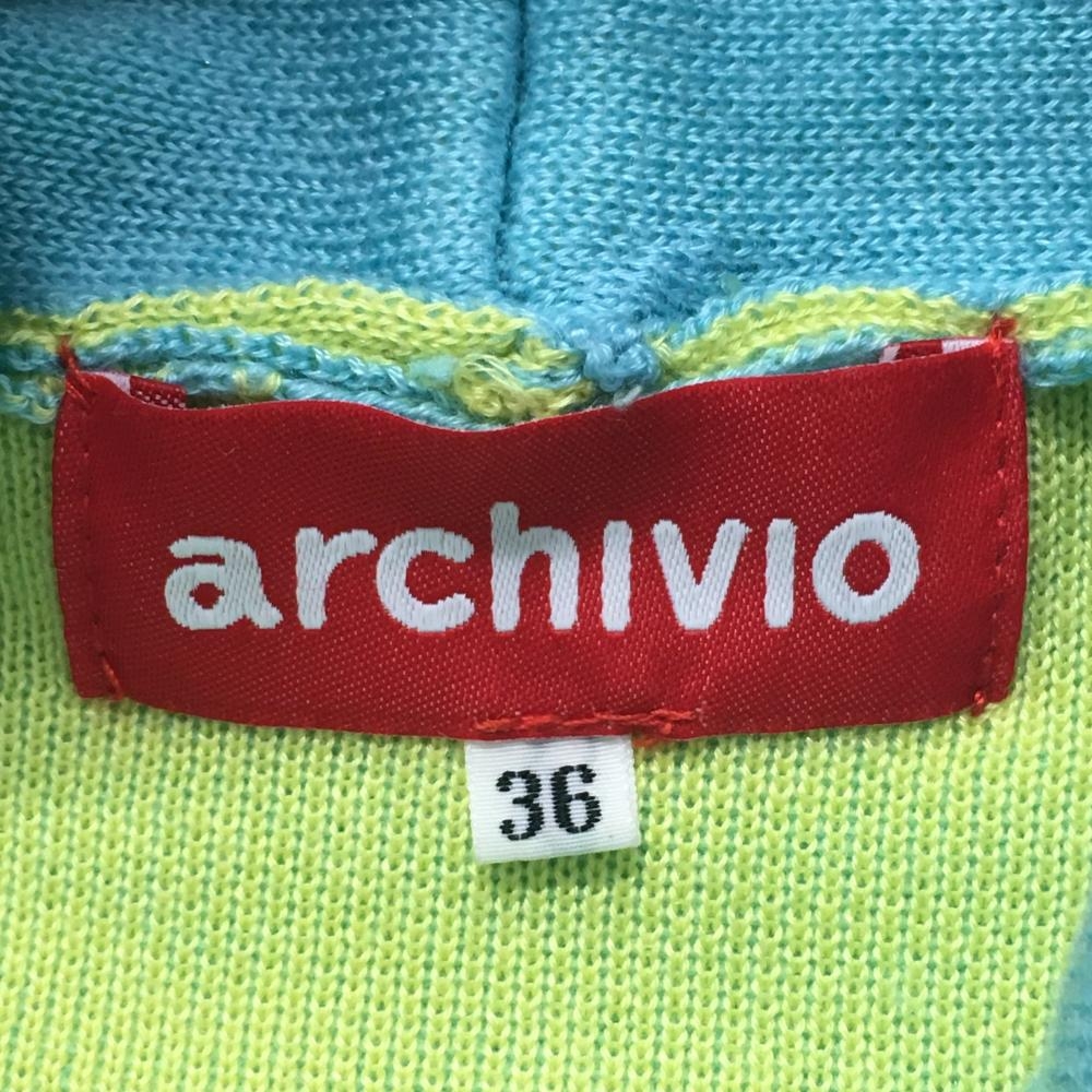 【美品】アルチビオ ニットパーカー ライトブルー×イエロー フロントロゴ セーター レディース 36(S) ゴルフウェア archivio