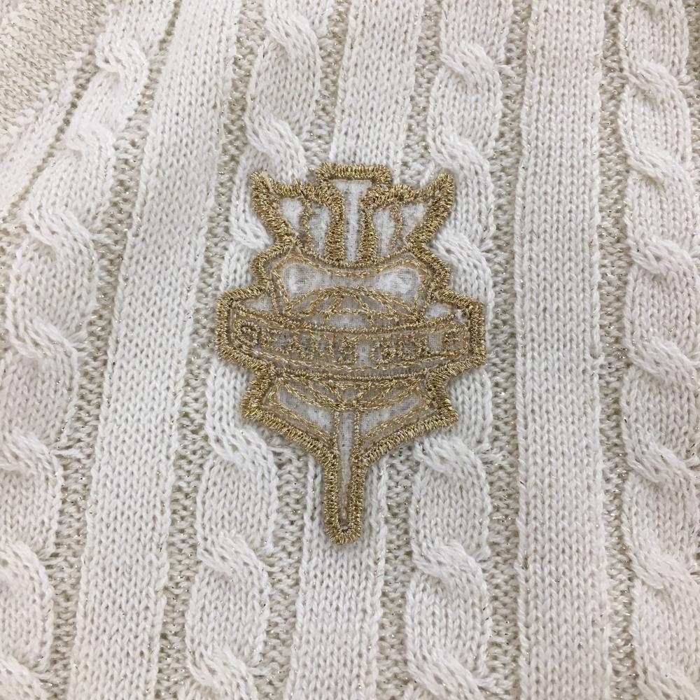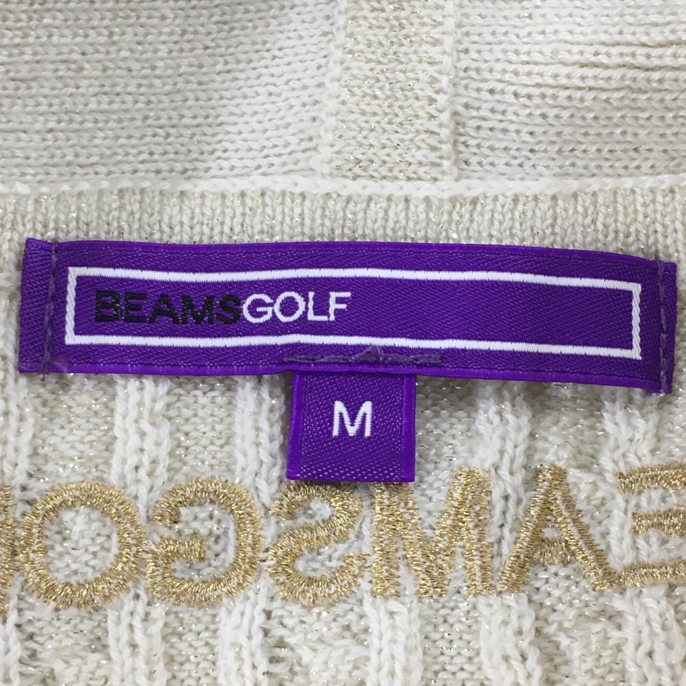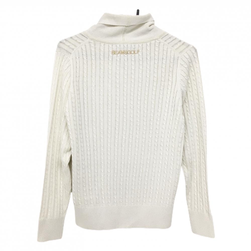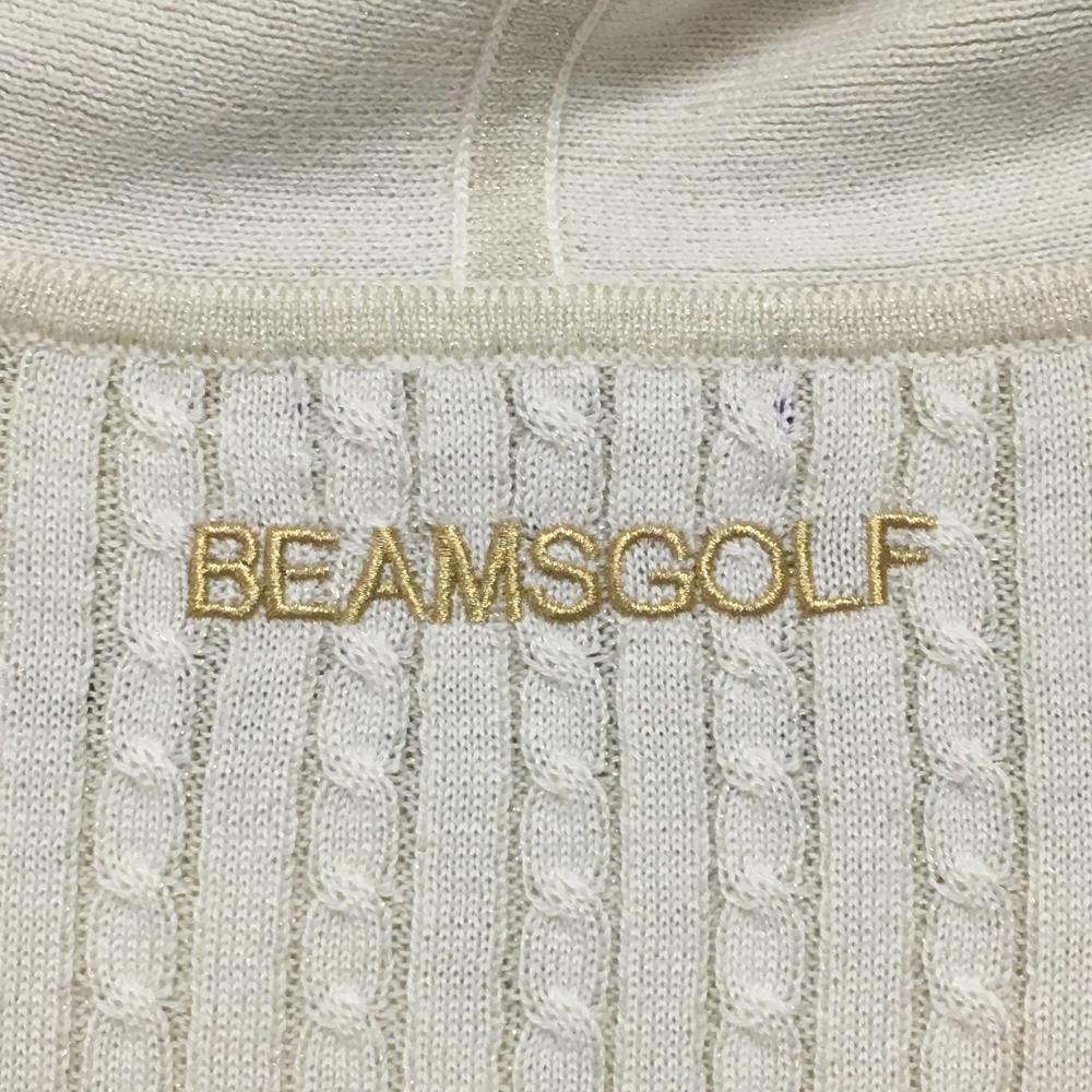 【美品】ビームスゴルフ セーター 白 ラメ ケーブル編み ロゴ刺しゅう ニット レディース M ゴルフウェア BEAMS GOLF