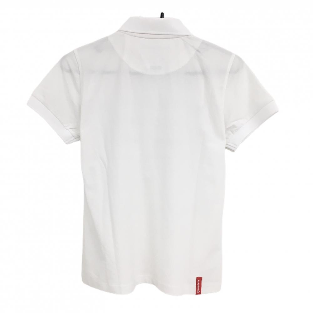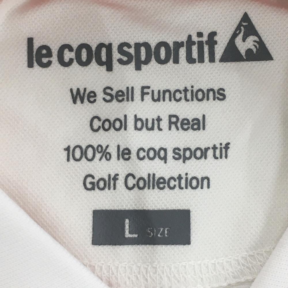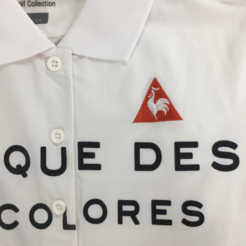 【超美品】ルコックゴルフ 半袖ポロシャツ 白×黒 英字プリント ロゴ刺しゅう レディース L ゴルフウェア le coq sportif